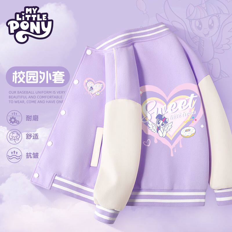 小马宝莉女童外套春秋款2026新款儿童洋气棒球服中大童撞色上衣服