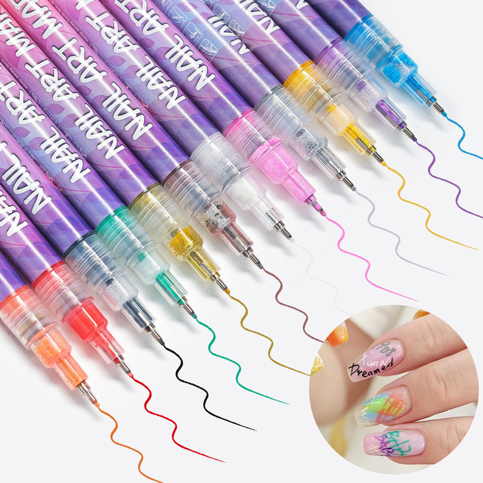 美甲涂鸦笔彩绘笔丙烯马克笔彩色速干网红新款指甲画花工具免照灯