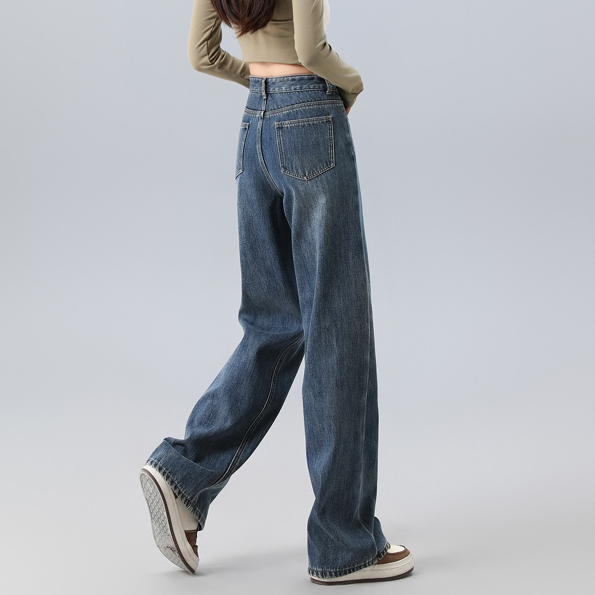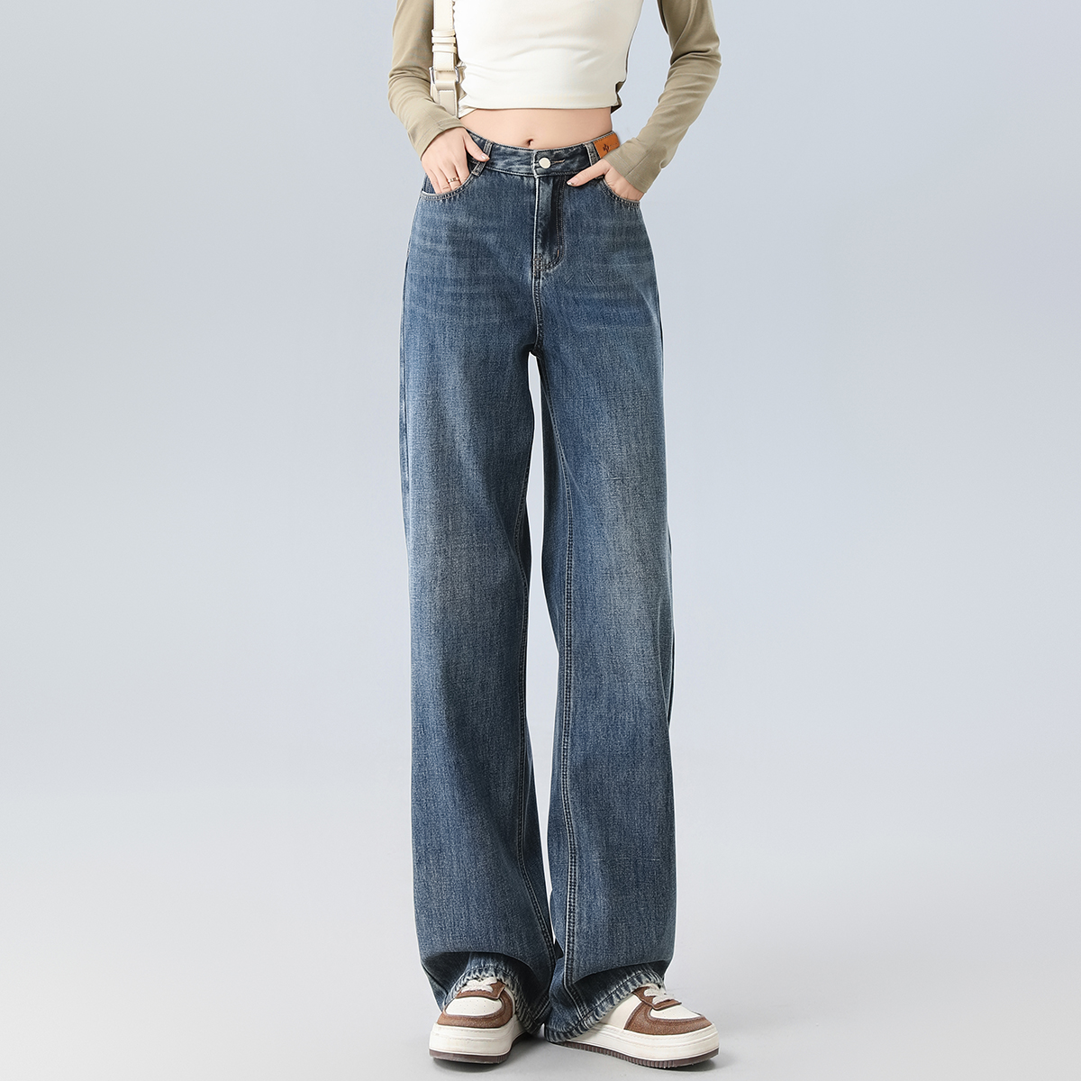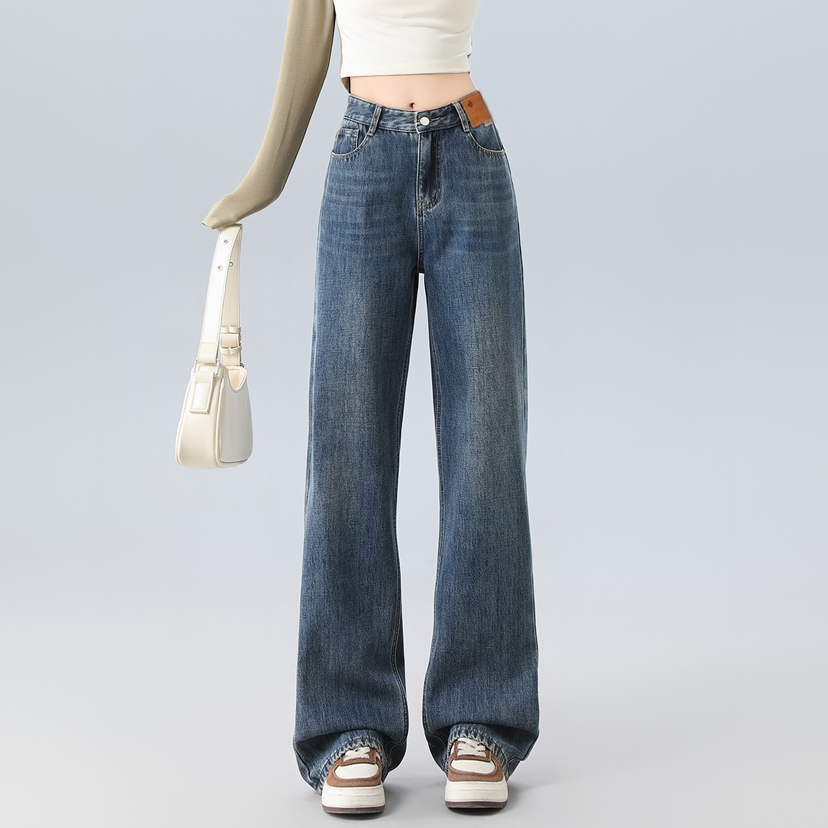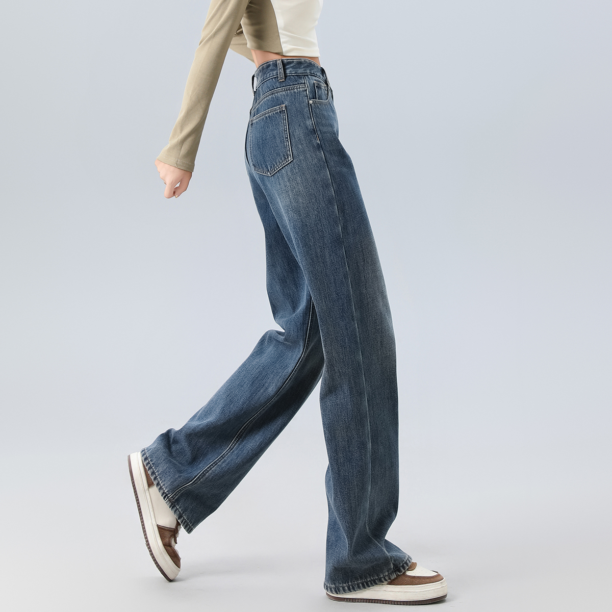 one more女装通勤风2025冬季新款质感阔腿裤女极简风高腰牛仔长裤