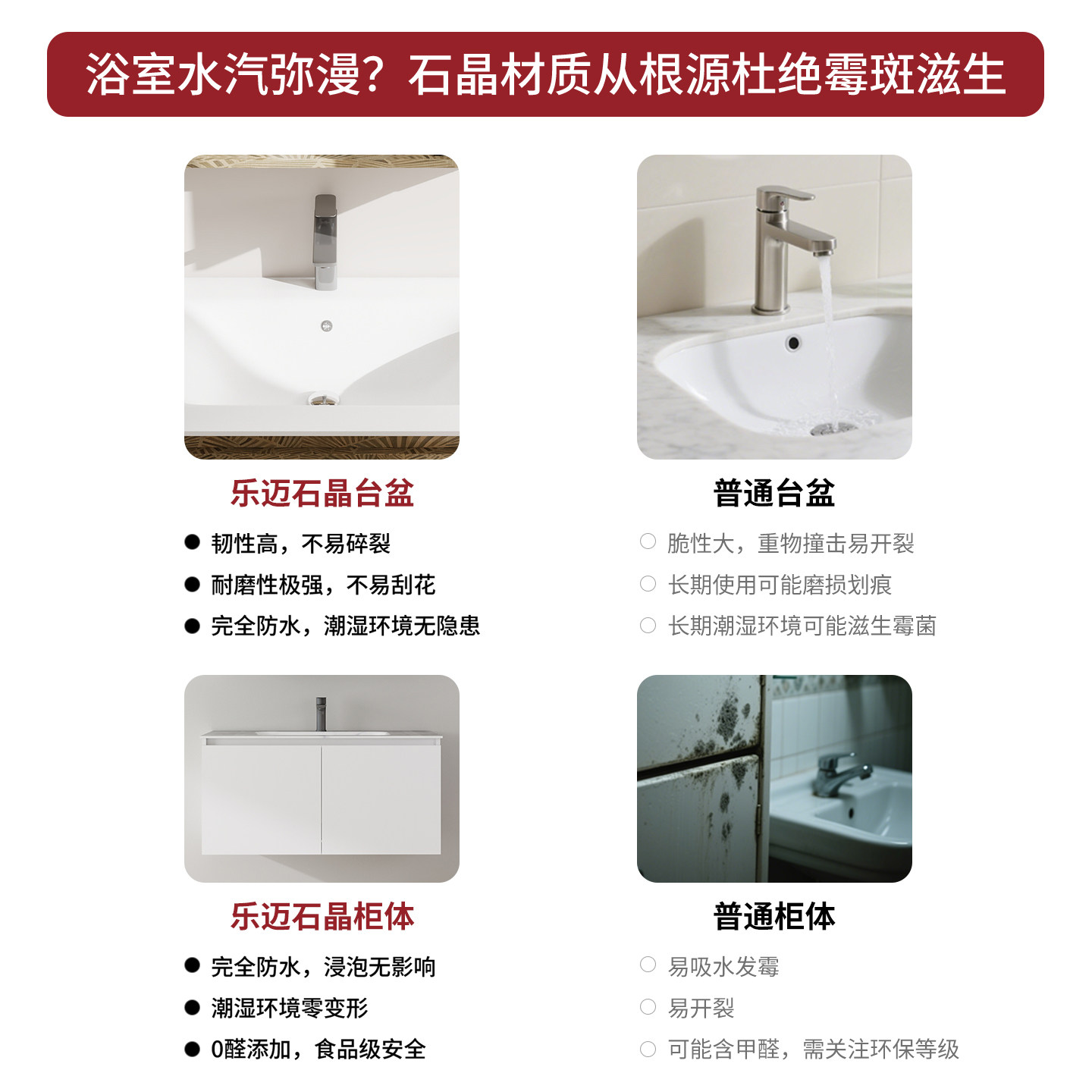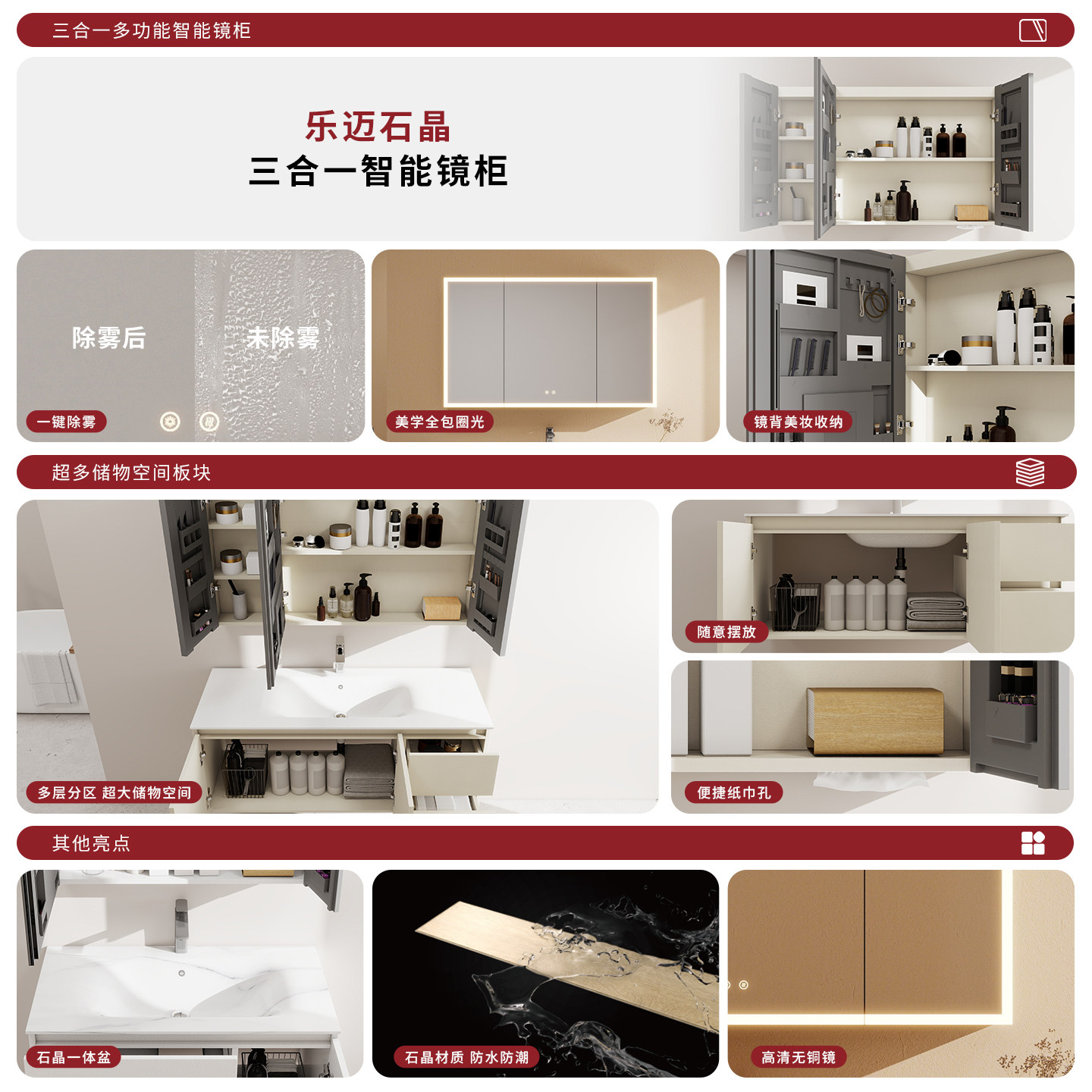乐迈石晶现代轻奢浴室柜一体盆柜组合洗脸洗手卫浴柜卫生间洗漱台
