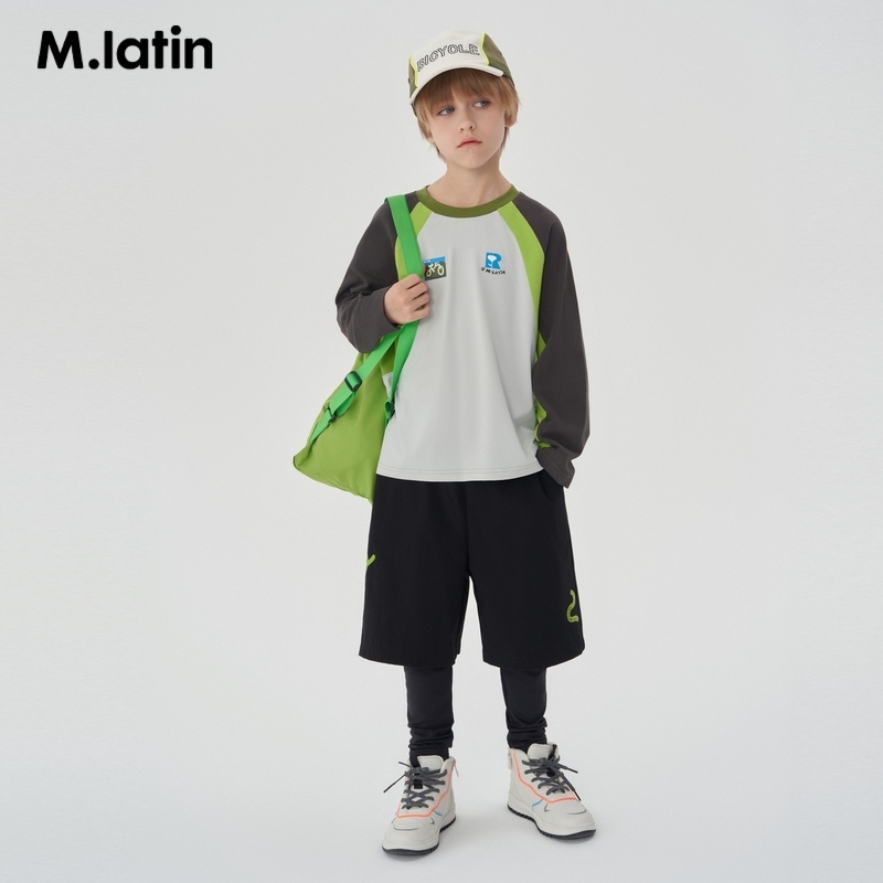 马拉丁童装儿童裤子2024年春装新款男童大童假两件户外速干运动裤