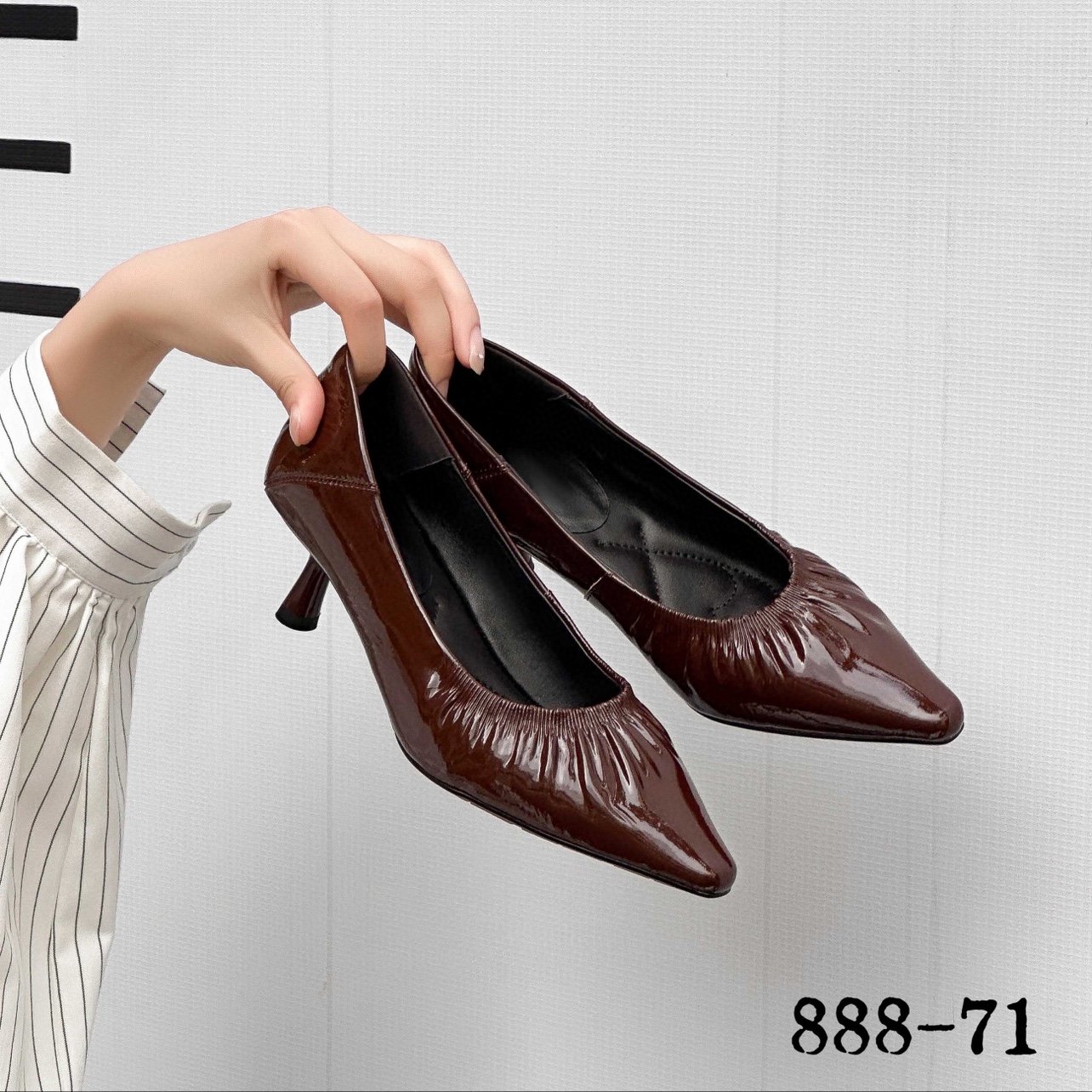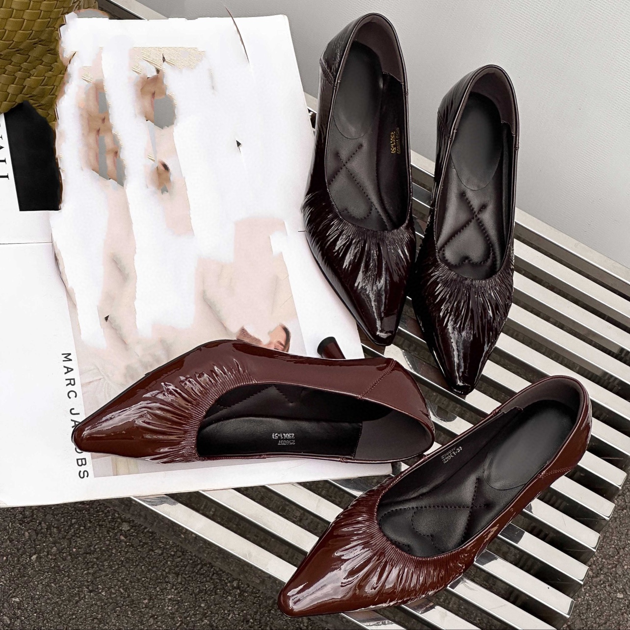 欧洲站2025秋新款褶皱羊皮尖头浅口细跟工作单鞋气质通勤高跟鞋女