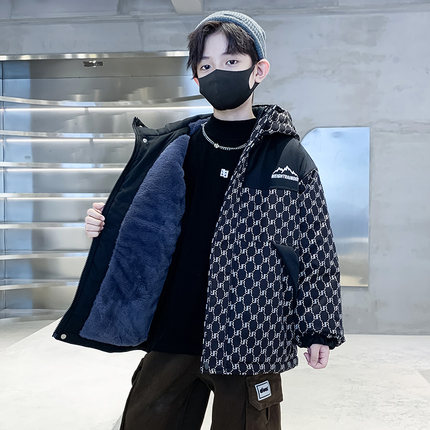 男童加绒外套秋冬季2025新款中大儿童冬装保暖加厚帅气男孩派克服