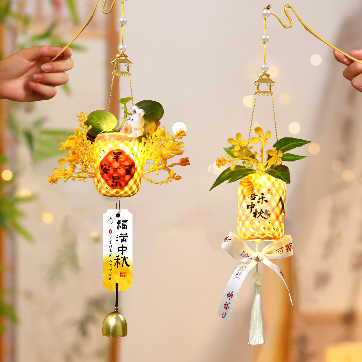 2025新款中秋节挂件竹编发光灯笼挂饰客厅场景布置小兔子花灯装饰