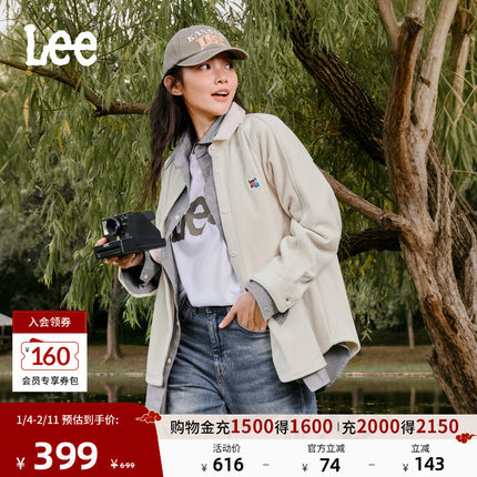 Lee25秋冬新品舒适版复合灯芯绒插肩袖米白色女长袖衬衫外套休闲