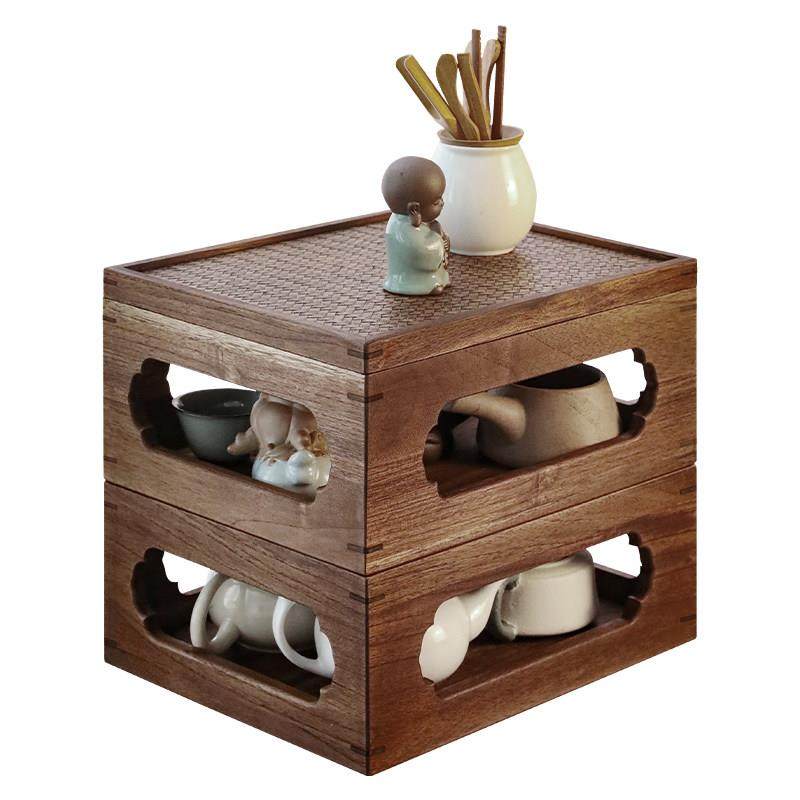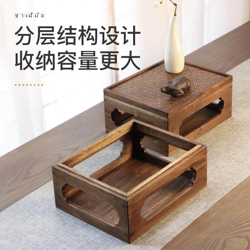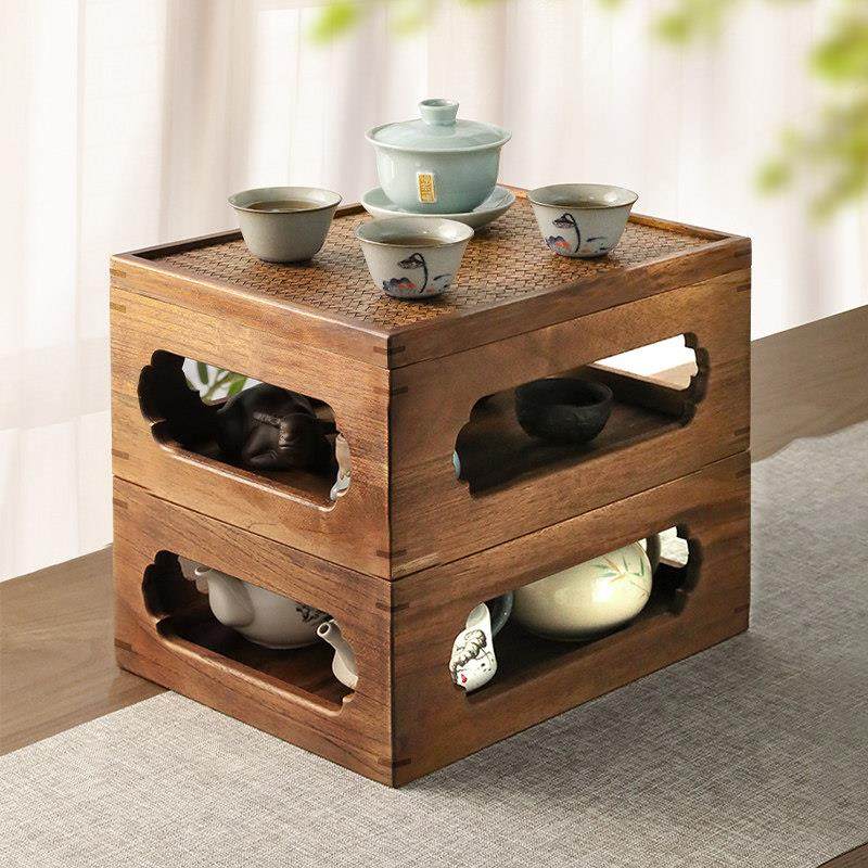 异丽实木功夫茶具收纳盒防尘茶盘紫砂壶置物架茶壶茶杯多功能架子