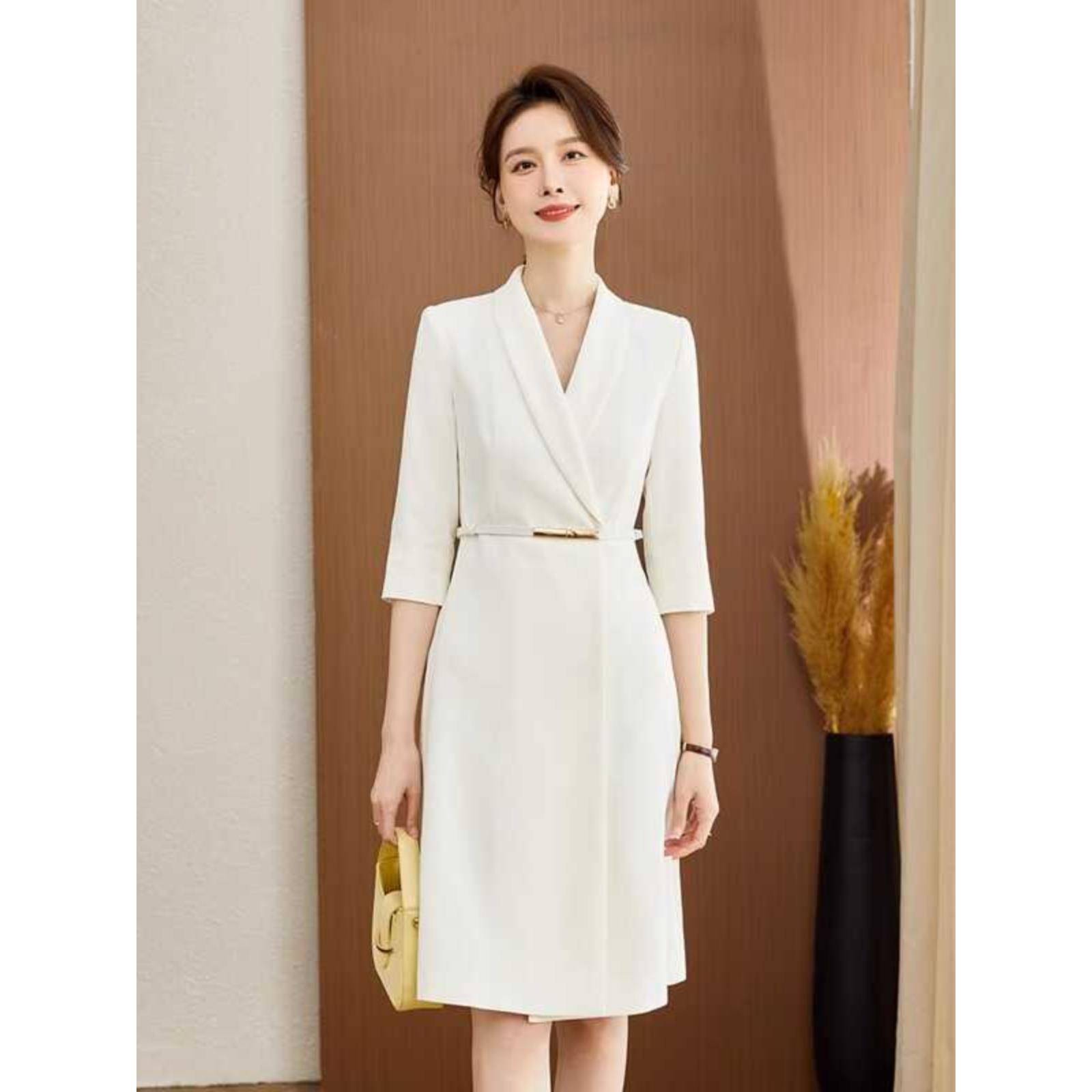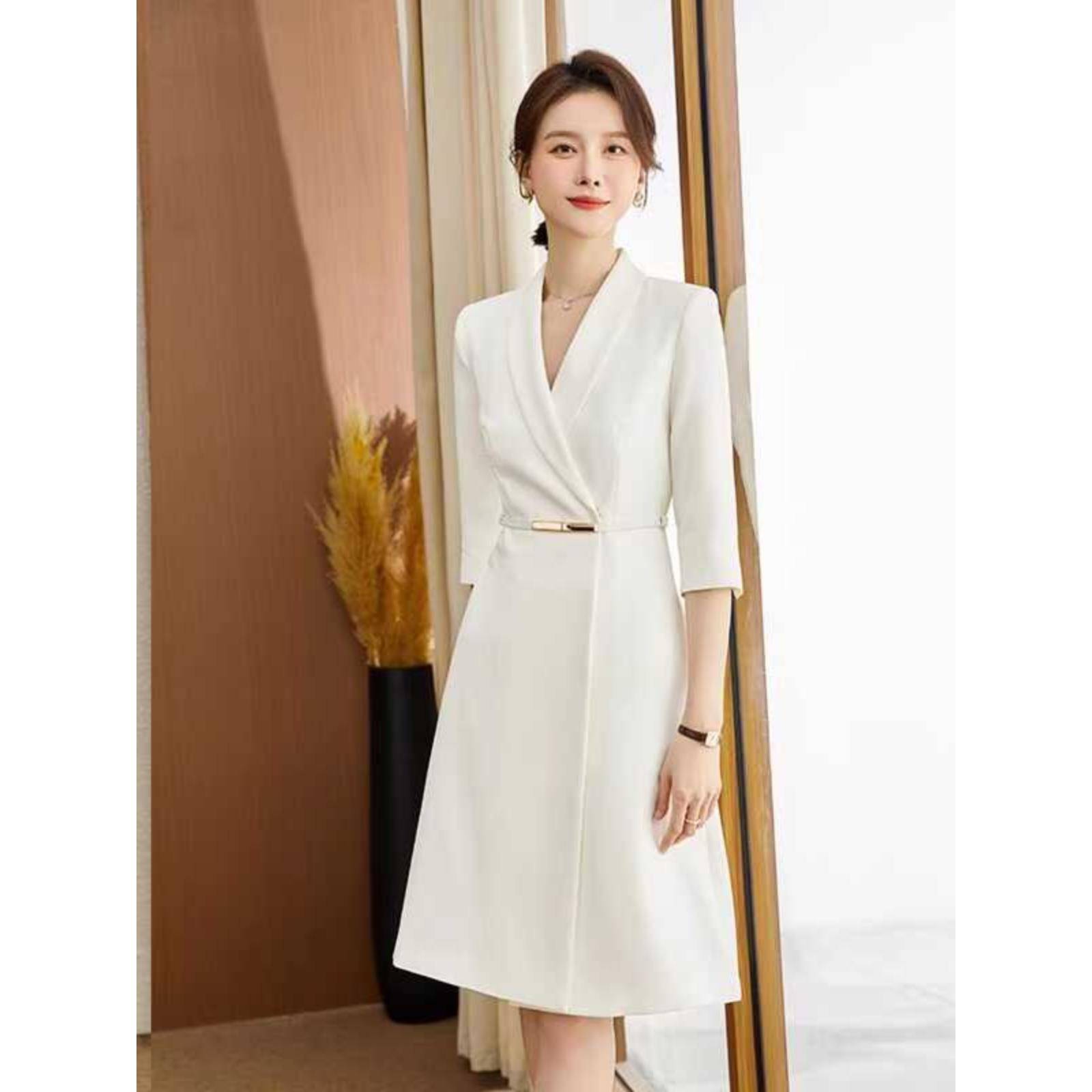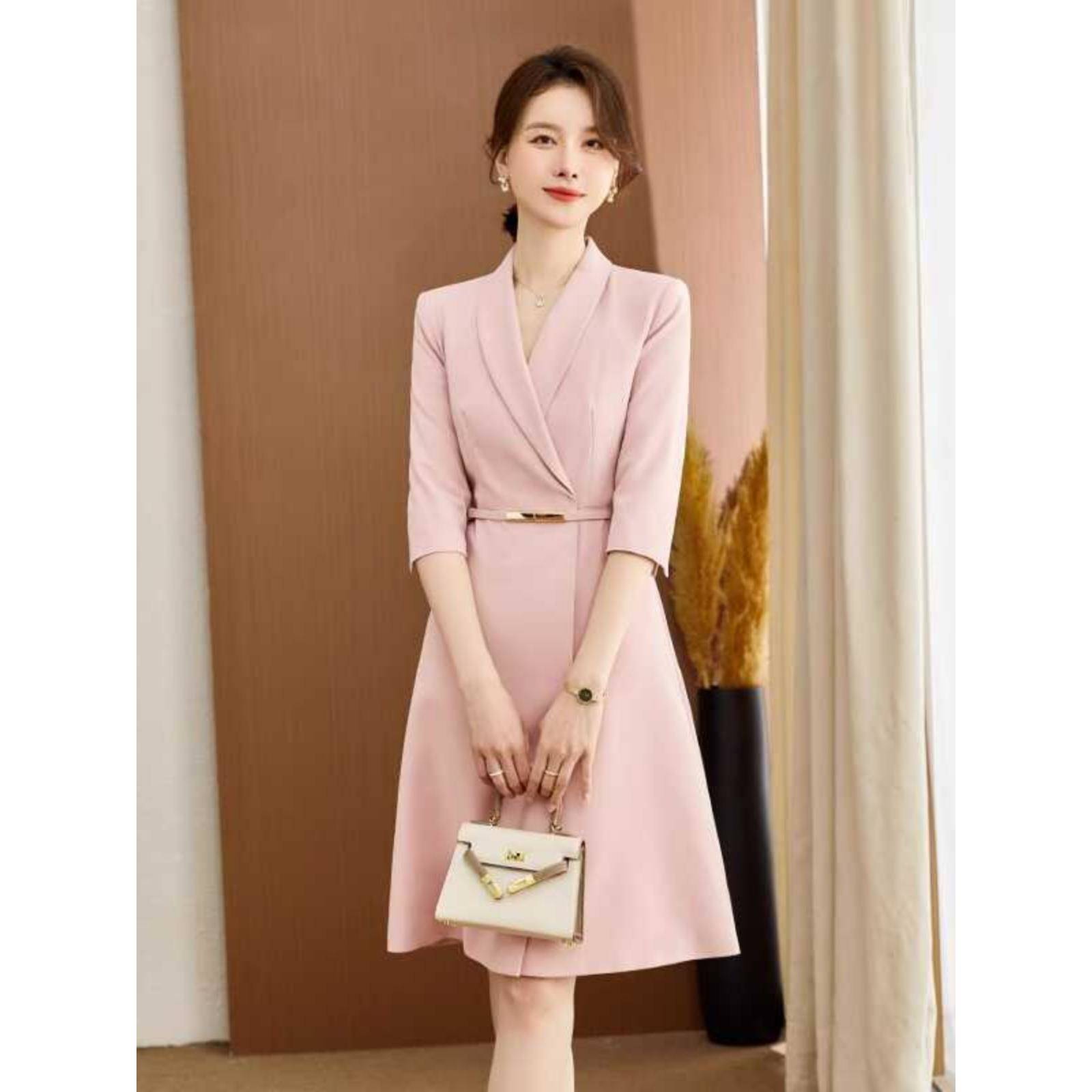 朗姿高级感粉色正式场合西装连衣裙女春夏2024新款气质职业主持人
