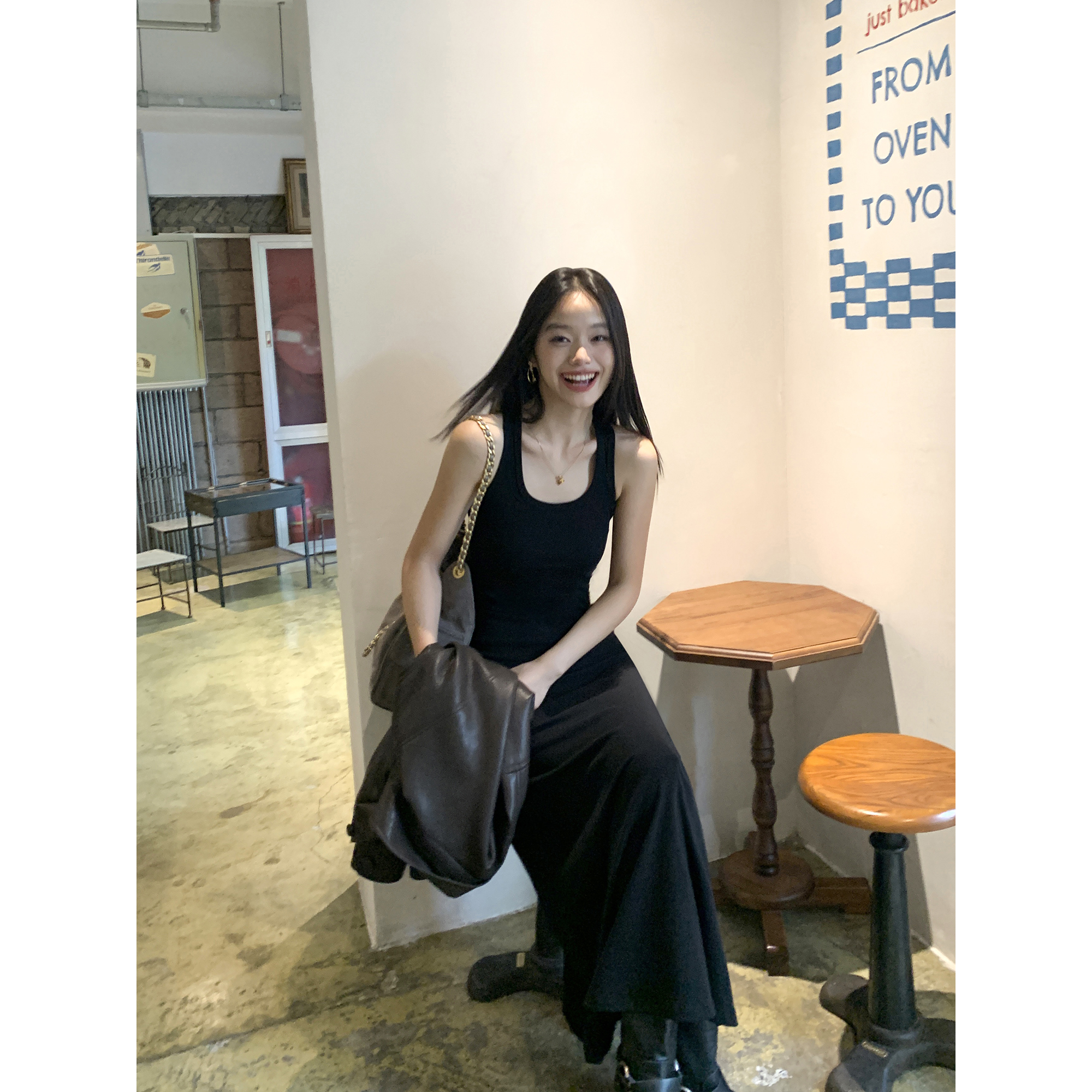 pusumede复古油画 U领工字无袖背心连衣裙女收腰气质内搭针织长裙