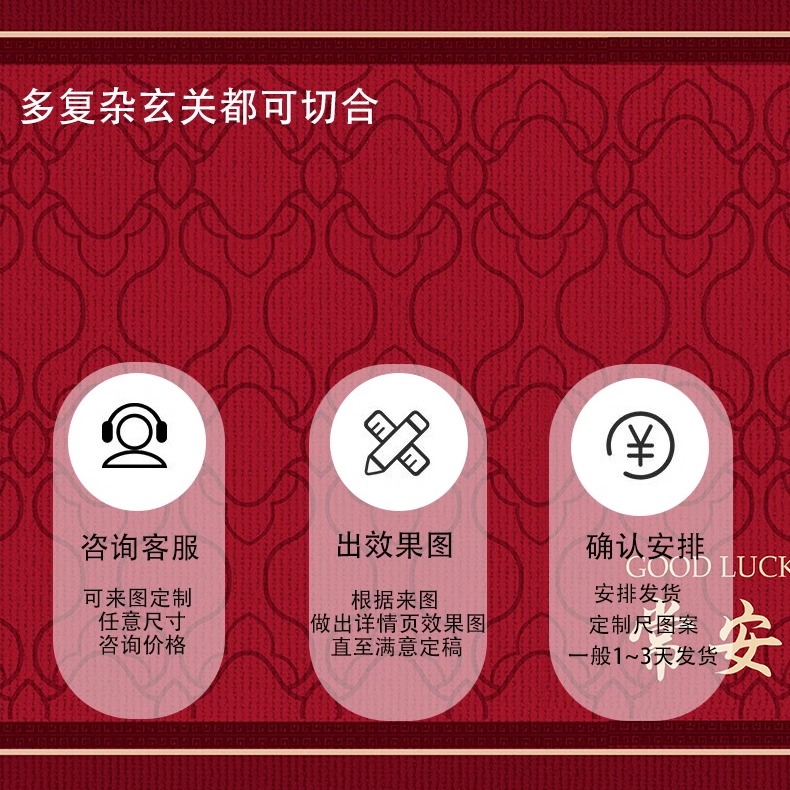 新年入户门地垫喜庆进门门口耐脏防滑脚垫红色可裁剪家用玄关地毯