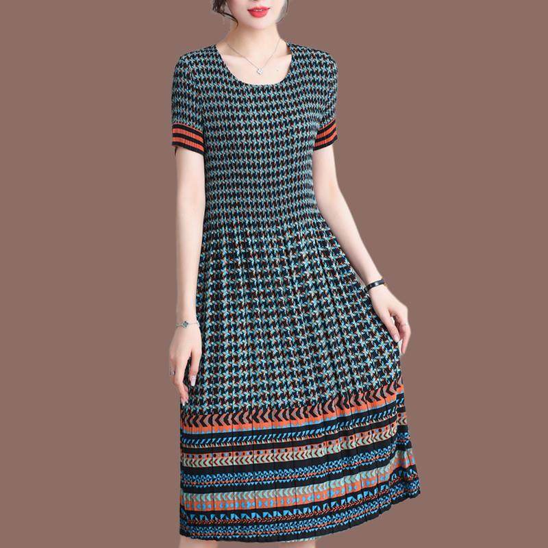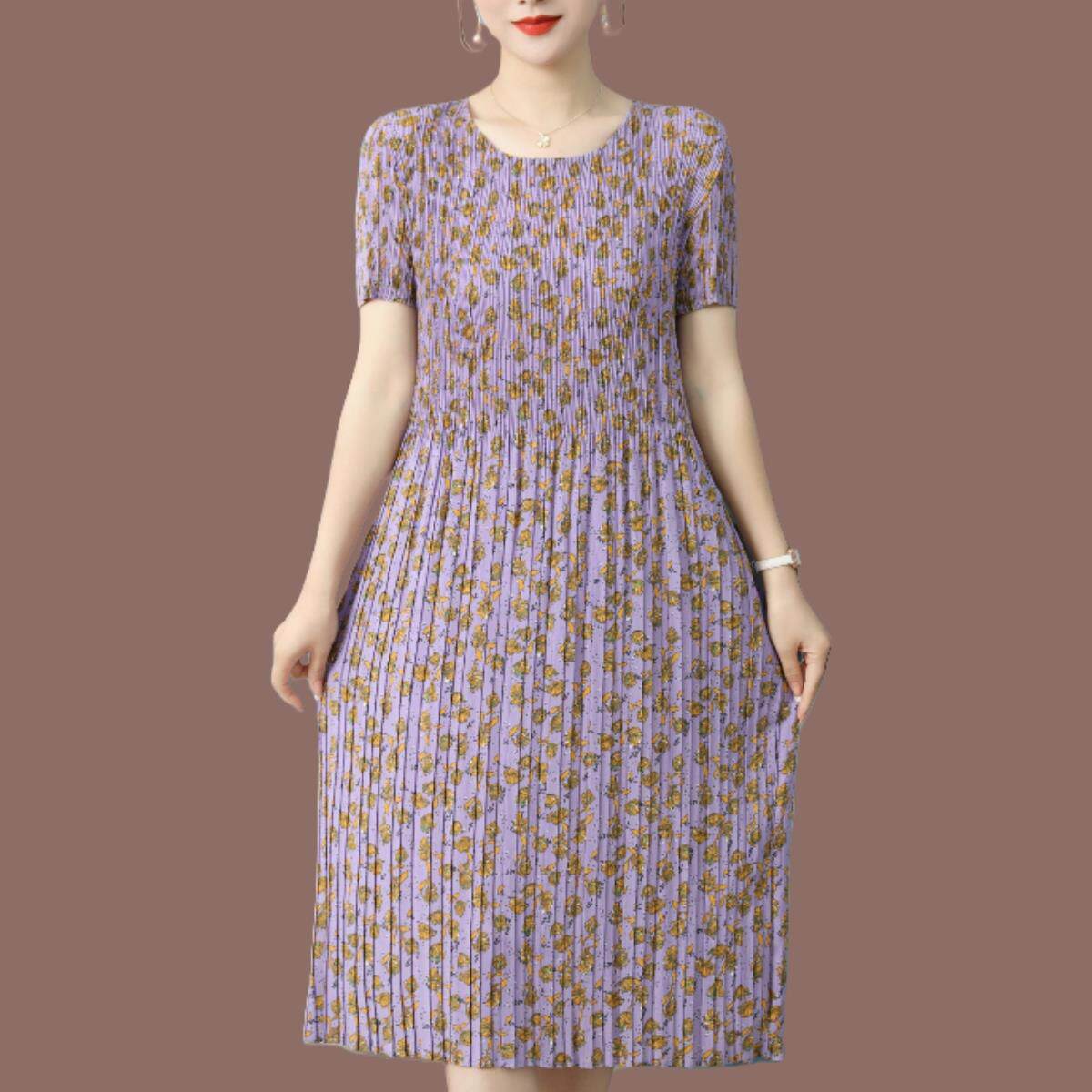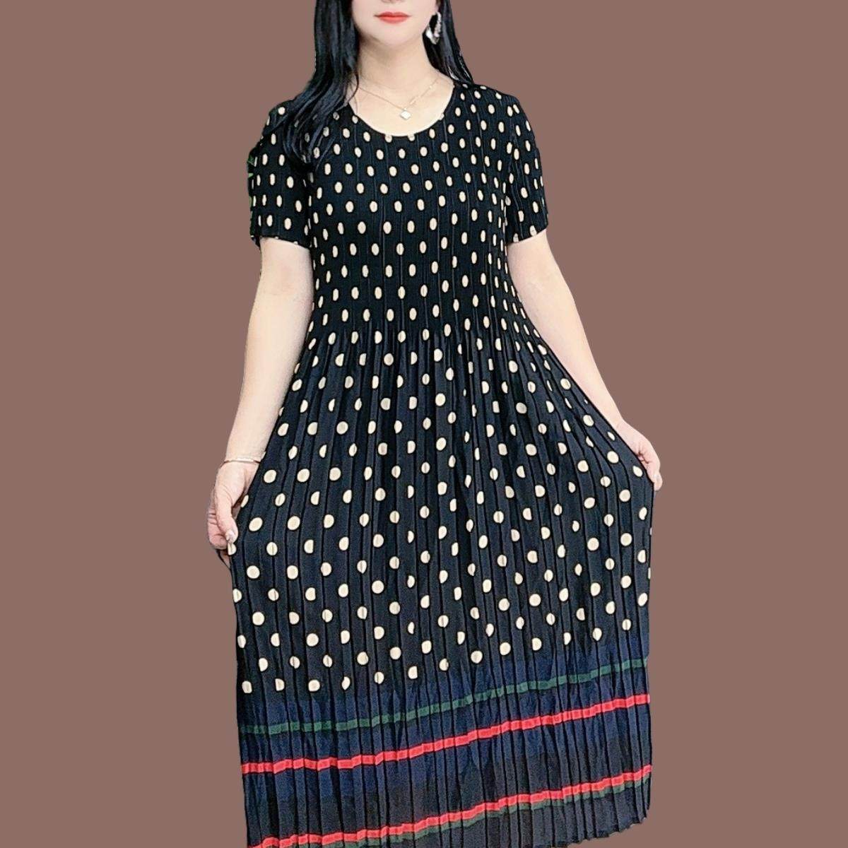三宅褶皱连衣裙2025年夏新款妈妈装气质显瘦遮肉时尚a字百褶长裙
