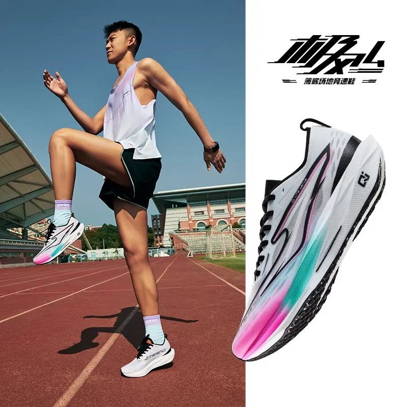 鸿星尔克极风4跑步鞋中考体测无钉钉鞋竞速疾风跑鞋减震运动鞋男