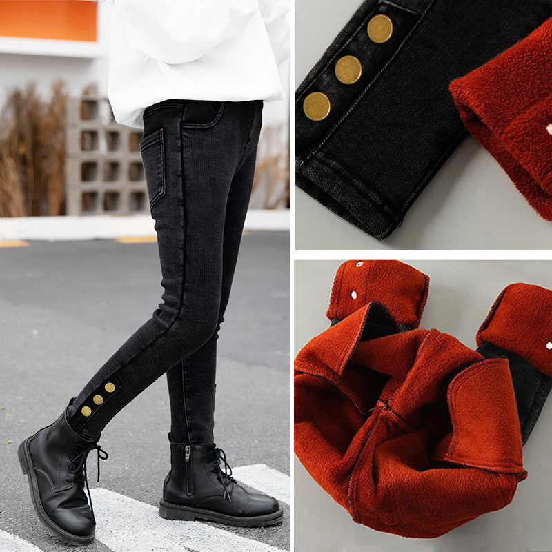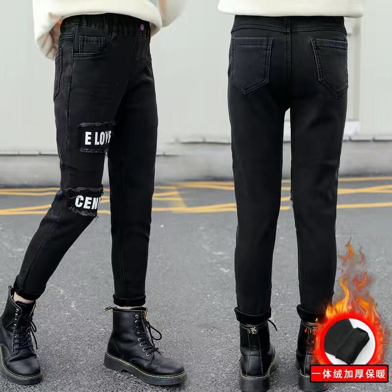 童装女童加绒加厚裤冬季一体绒中大儿童保暖棉裤女童牛仔打底裤子