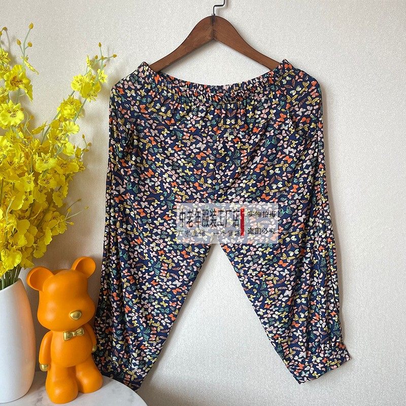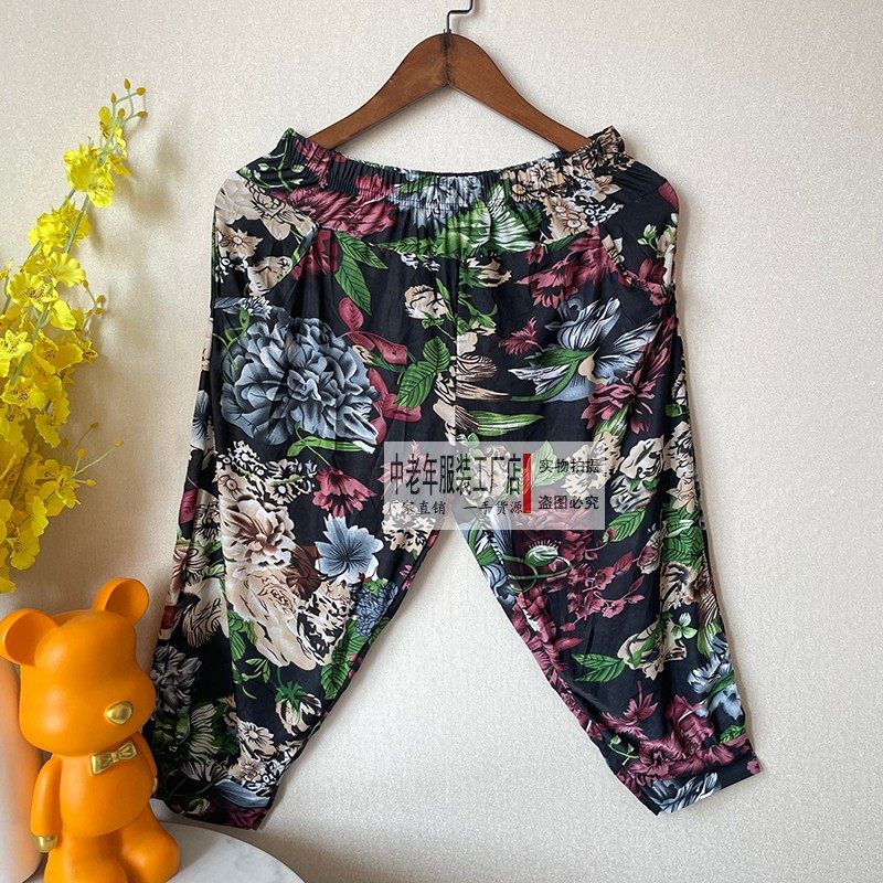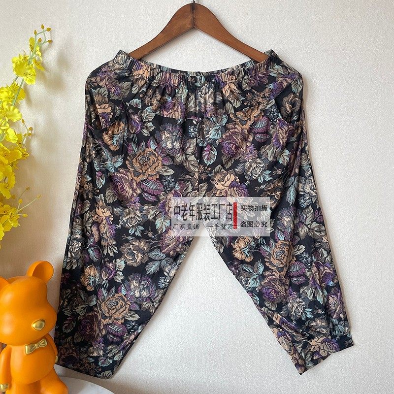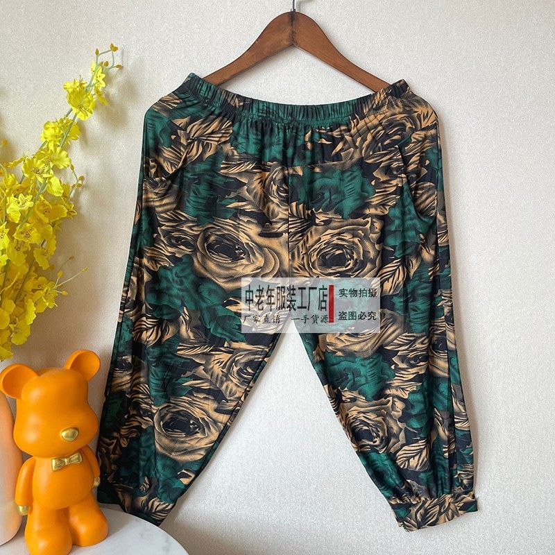 中老年夏季女士松紧高腰冰丝高弹力七分裤中裤舒适百搭花裤子薄款