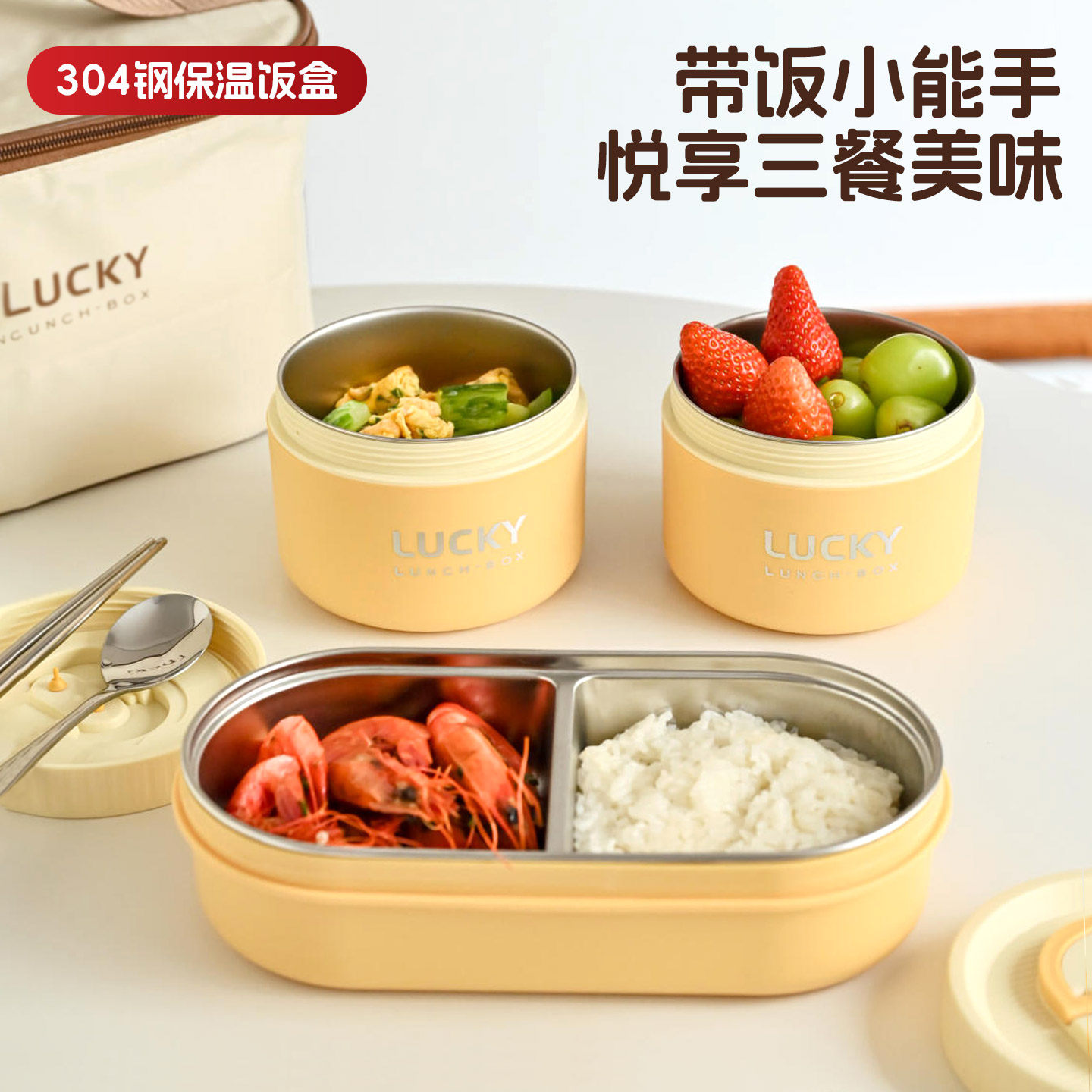 304不锈钢保温饭盒可微波便当盒