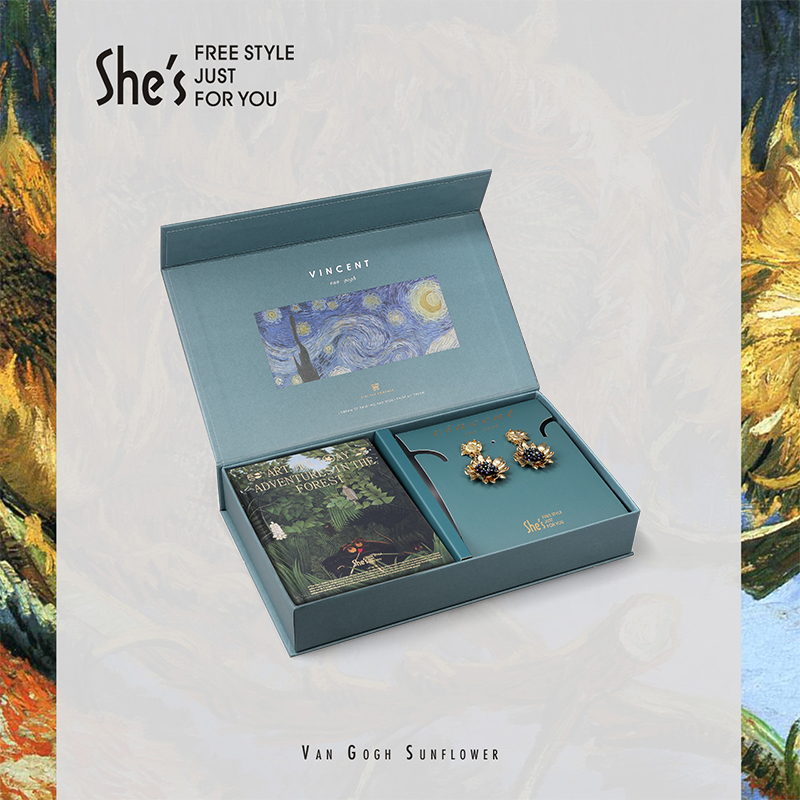 shes茜子梵高向日葵原创手工钉珠矿彩水晶大耳环复古耳钉耳饰女
