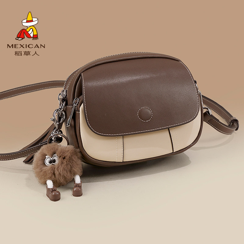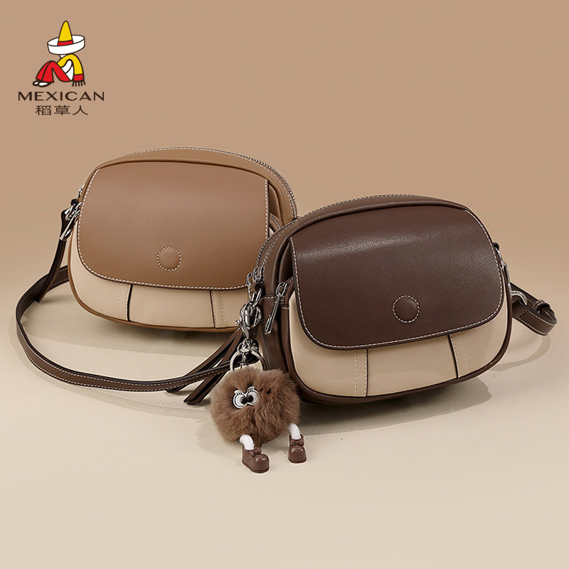 稻草人真皮女包2025新款时尚通勤小包包小众女士斜挎包牛皮单肩包