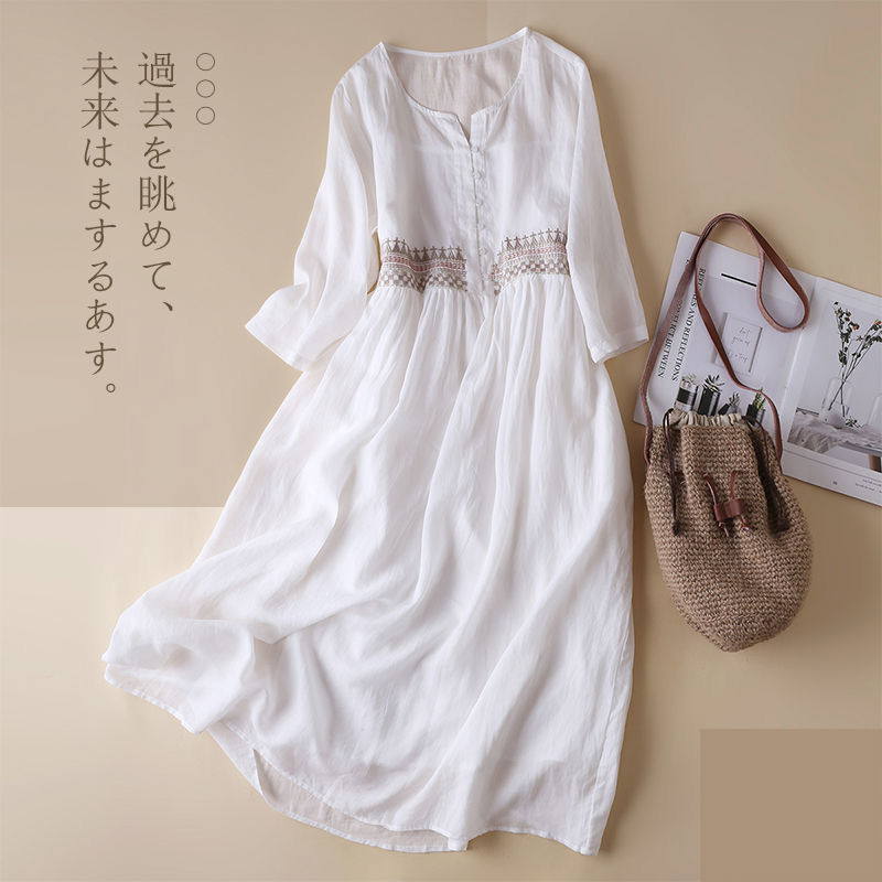 民族风绣花刺绣棉麻连衣裙大码宽松文艺气质大摆裙胖MM时尚A字裙