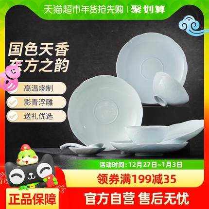 景德镇餐具套装影青雕刻碗碟套装家用创意饭碗高档乔迁新年礼物