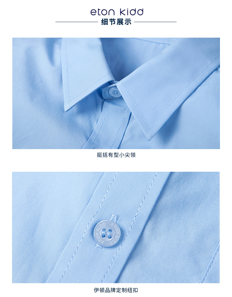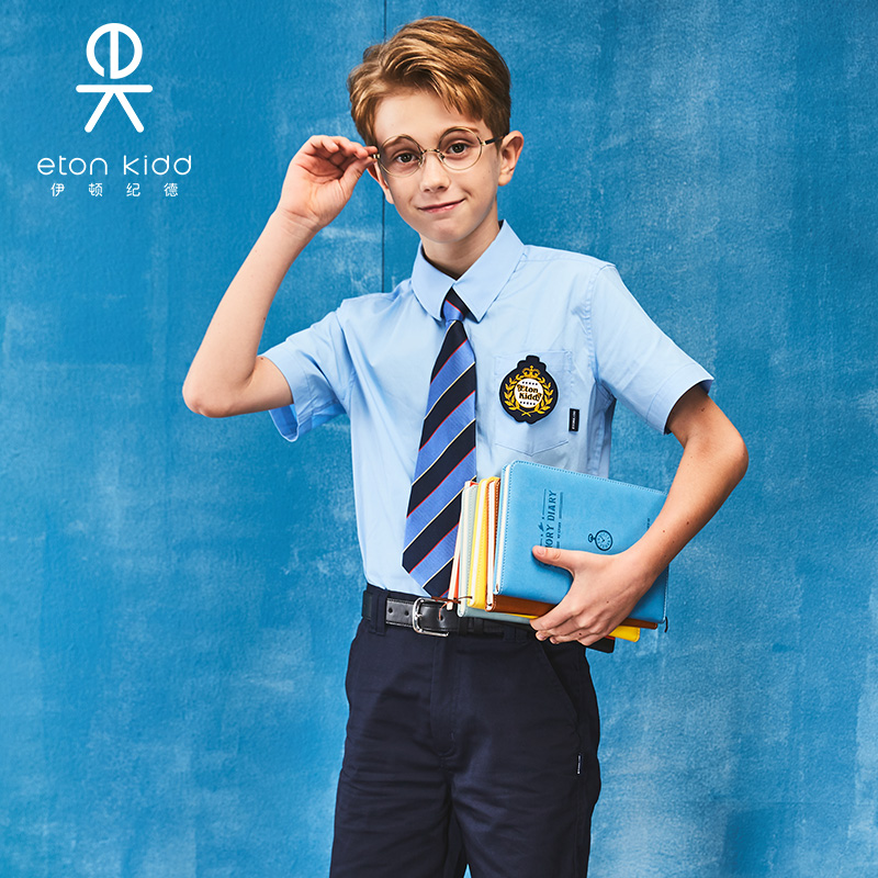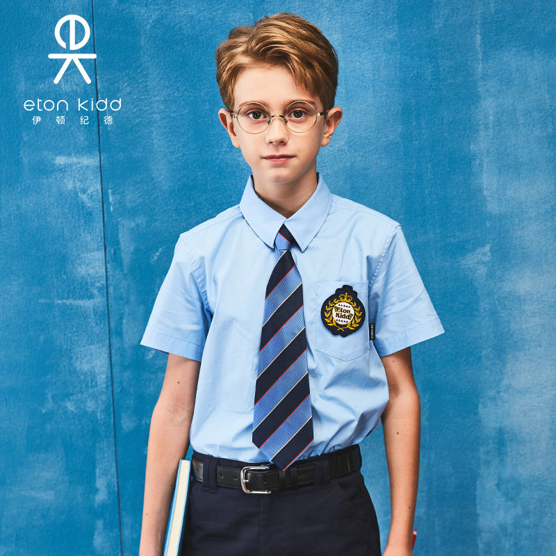 伊顿纪德学院校服学生男童蓝色短袖衬衣夏季儿童纯棉衬衫10C107惠