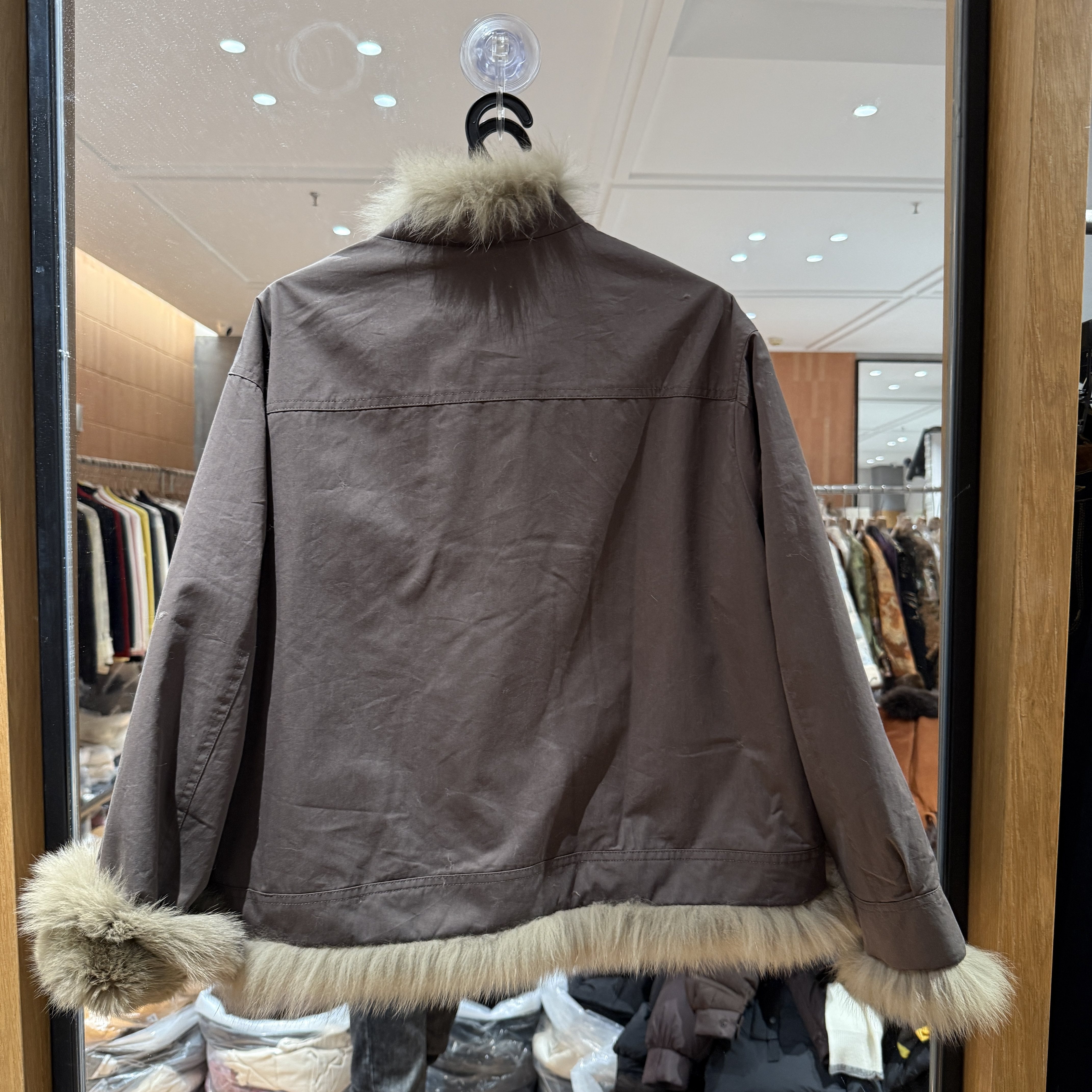 欧洲站2025冬季新款狐狸毛皮立领宽松百搭设计感长袖保暖外套152