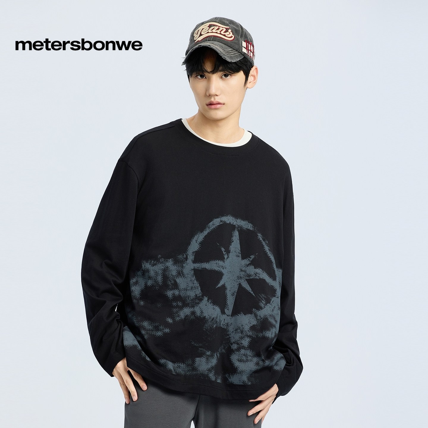 [商场同款]美特斯邦威长袖T恤男2025秋冬宽松休闲印花针织上衣T恤