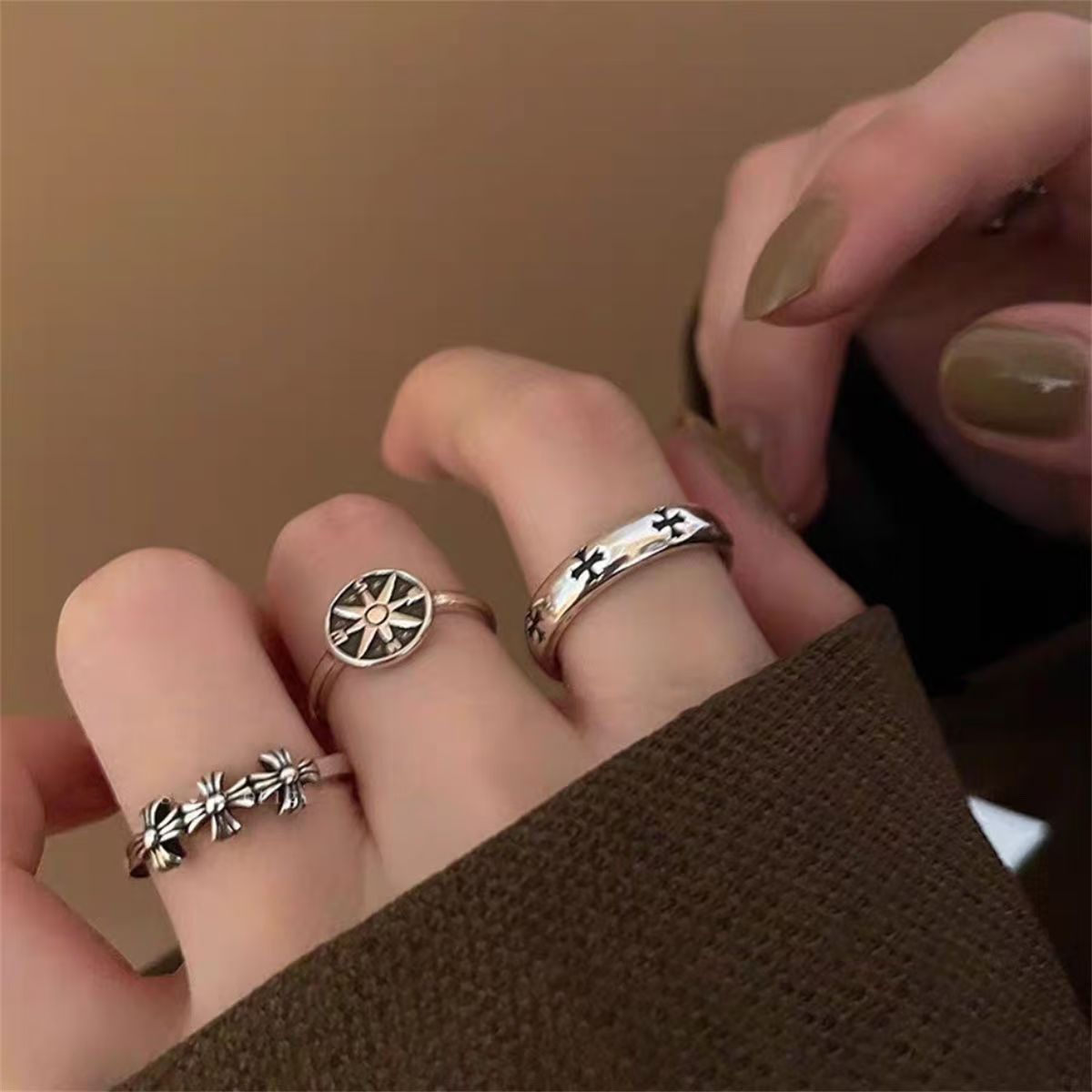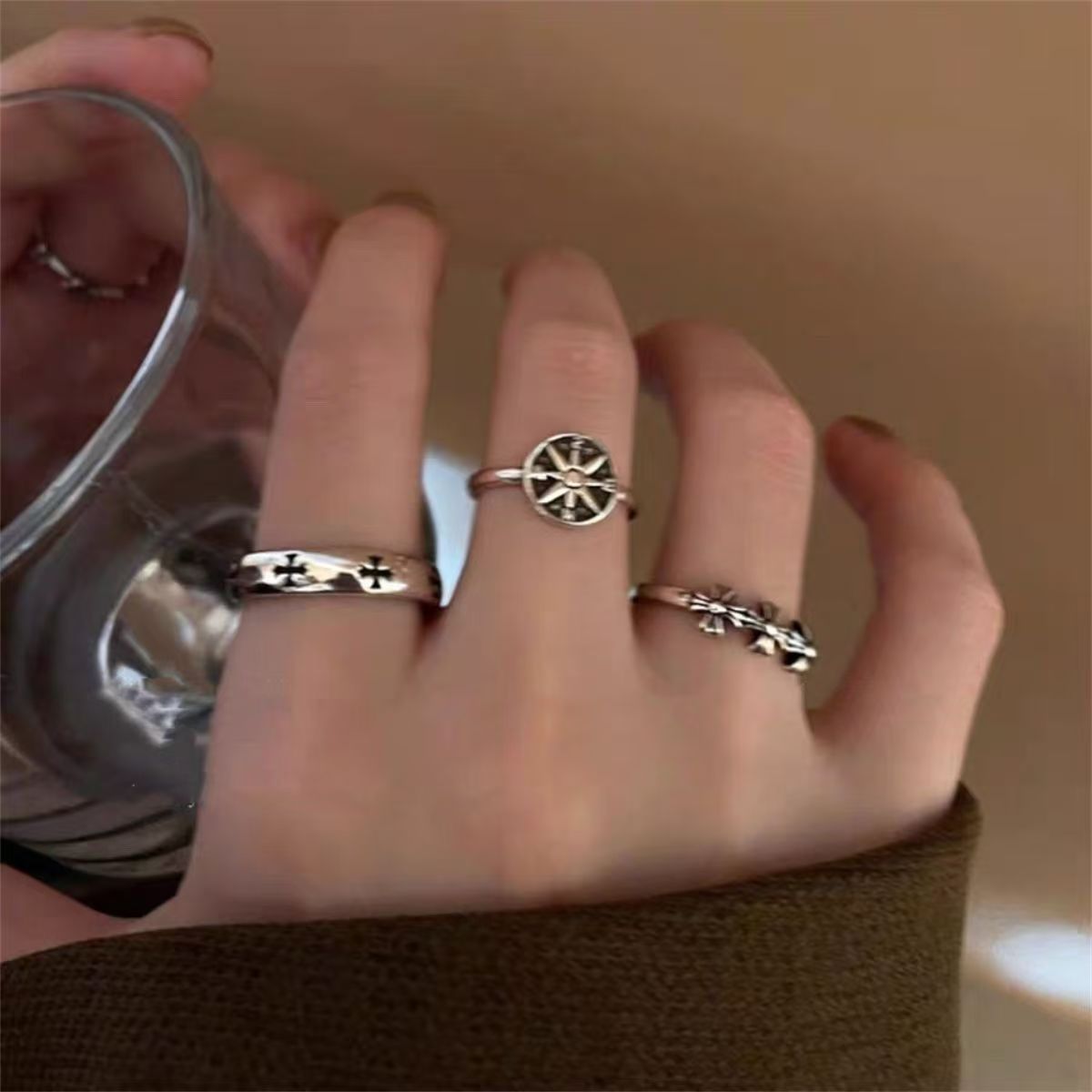 暗黑复古戒指女ins小众设计感开口可调节镂空十字架食指戒指环潮