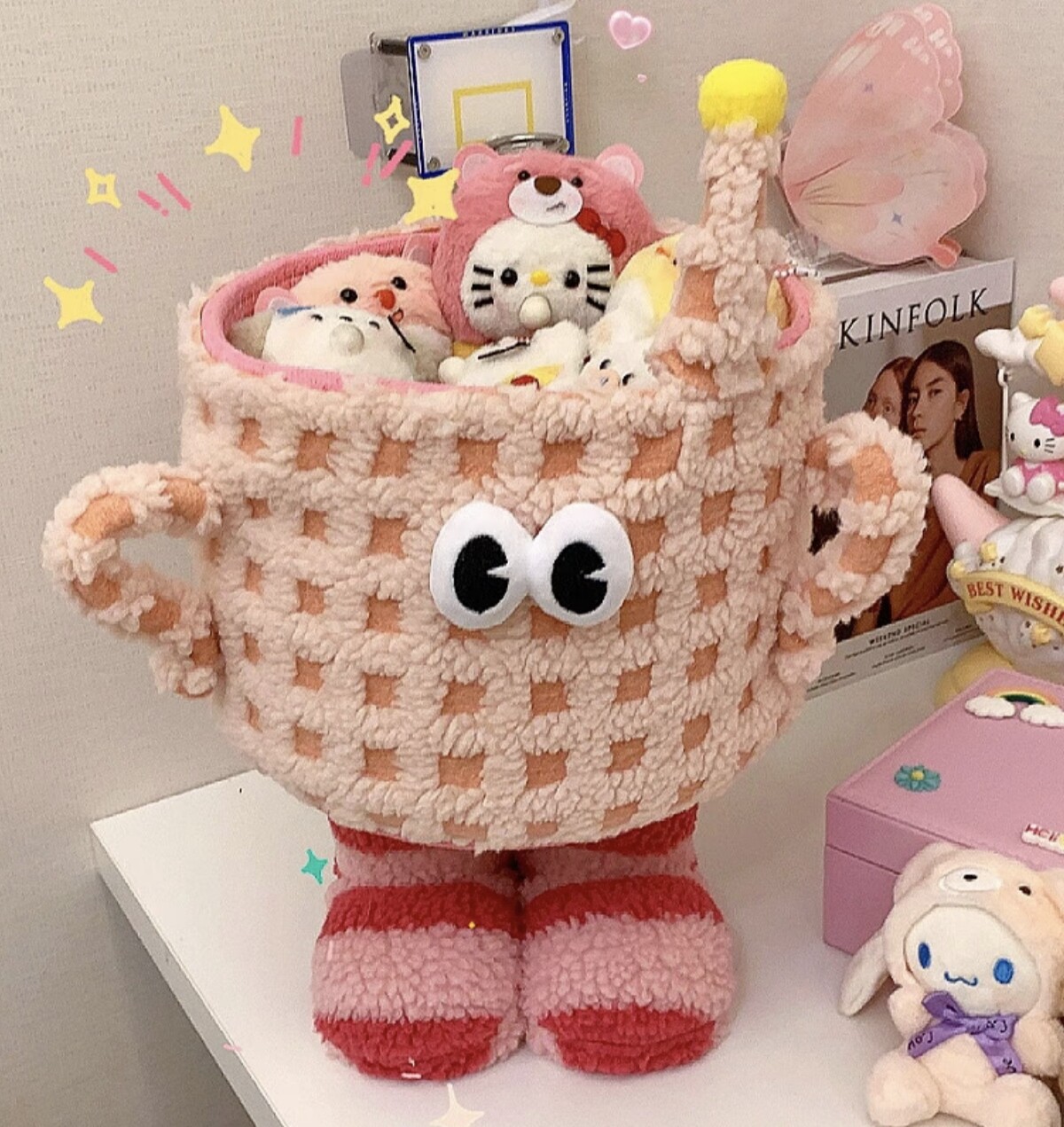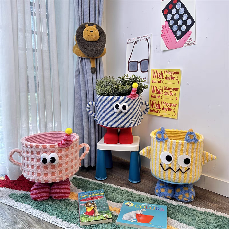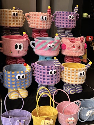 小怪兽收纳篮编织桌面床头家用整理储物可爱卡通搞怪多巴胺收纳筐