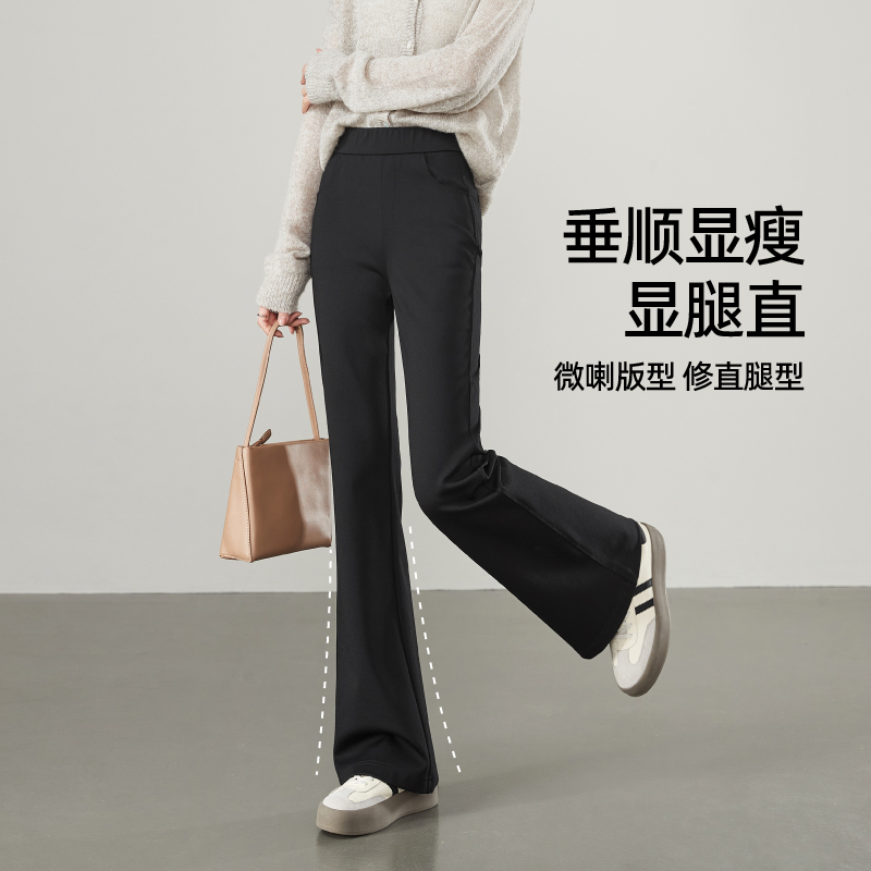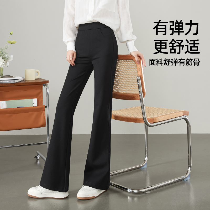 逸阳长腿微喇叭裤女2025年秋新款高腰修身显瘦弹力休闲松紧腰长裤