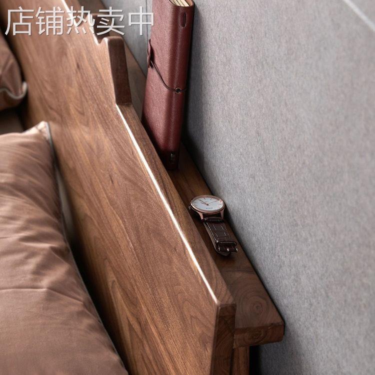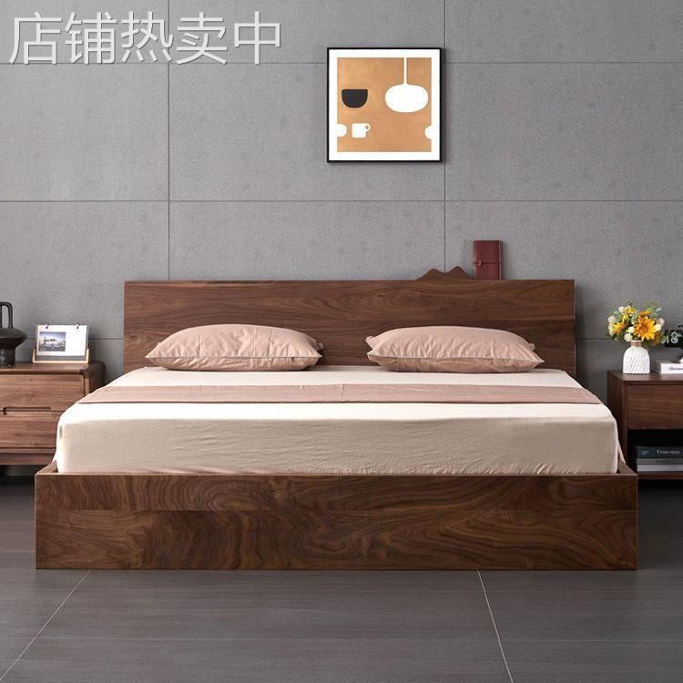 北欧实木床现代简约黑胡桃木主卧双人床家用1.5米1.8米原木家具