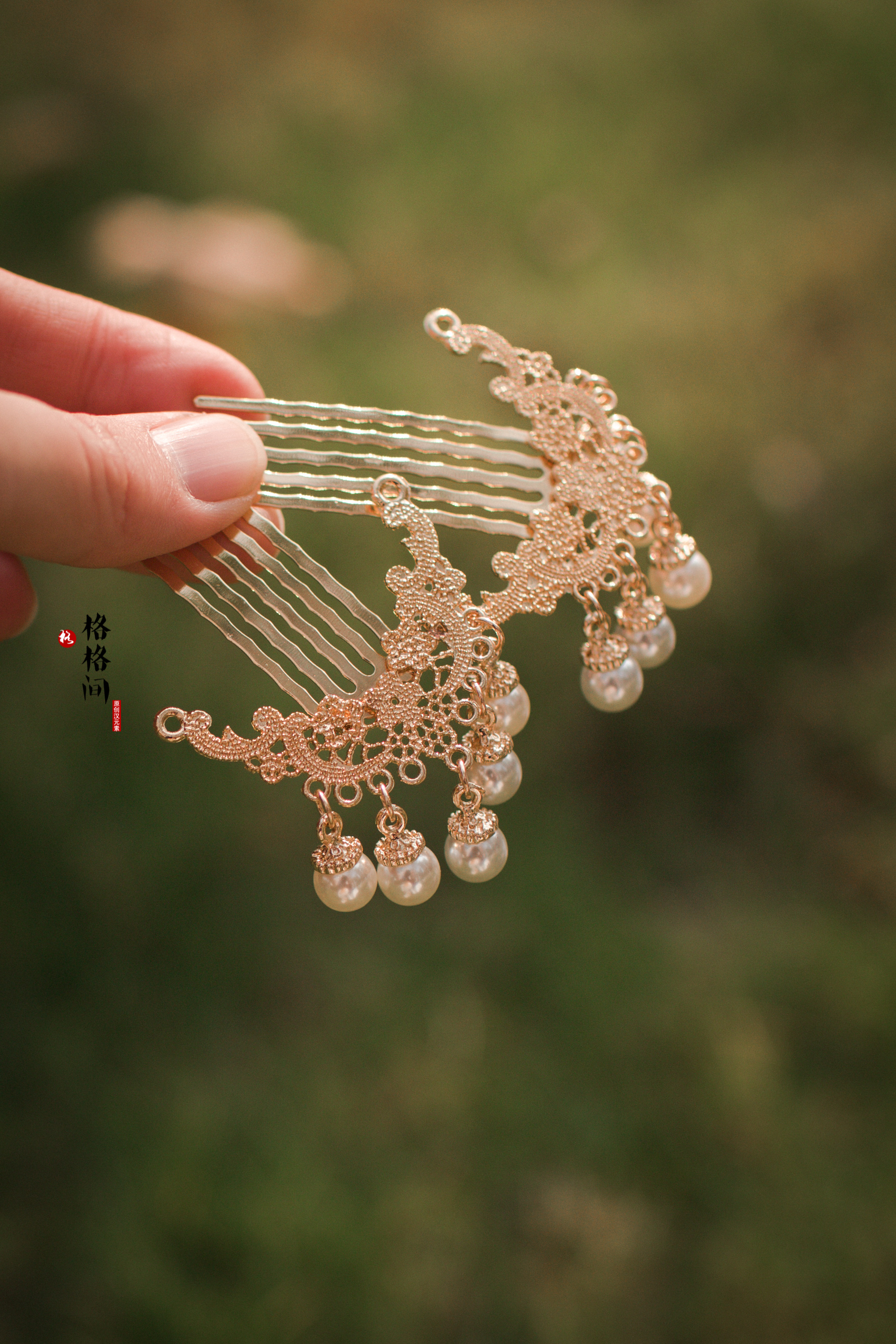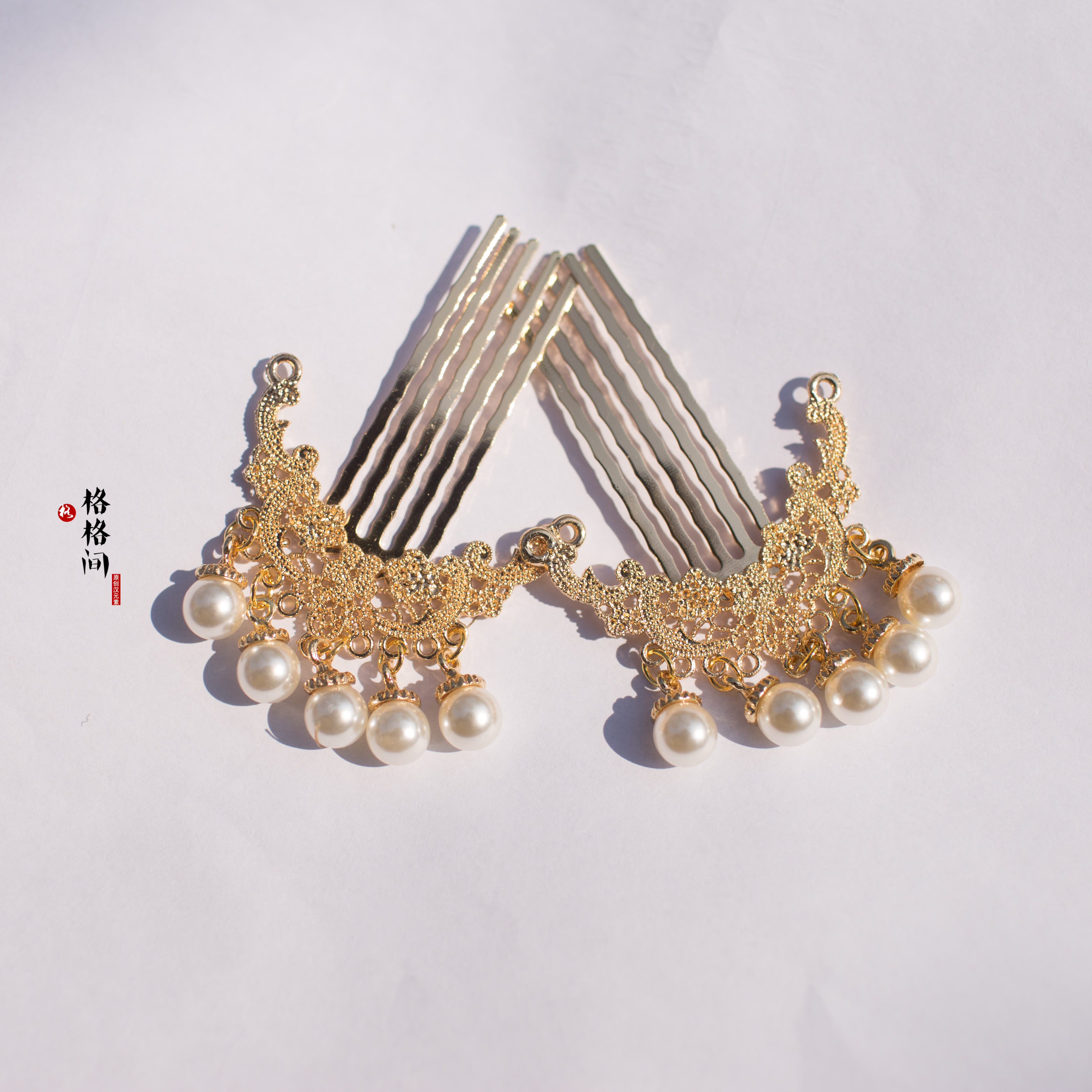汉服掩鬓流苏雕花明制头饰珍珠古风唐诃子南北朝u钗簪子插梳发饰