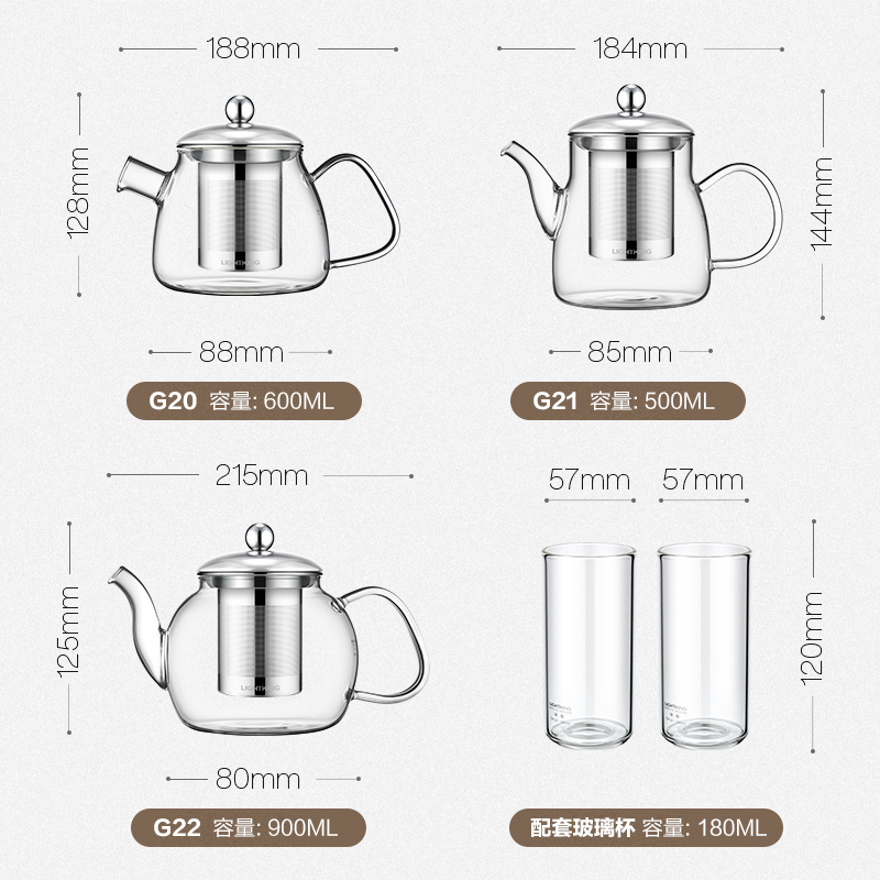 明尊G-20玻璃泡茶壶办公室茶具B套装花茶杯过滤冲茶壶整套茶具家