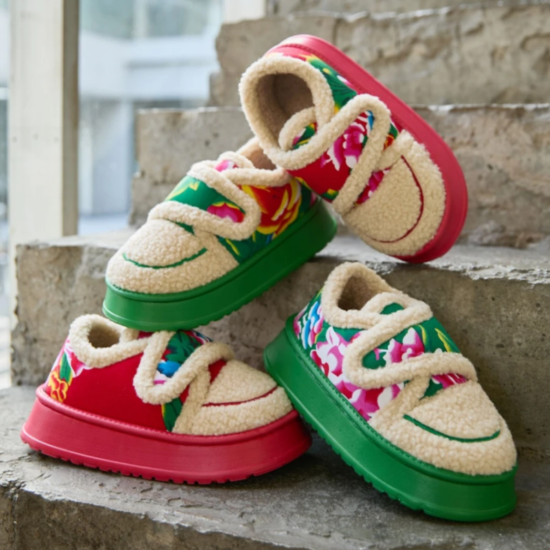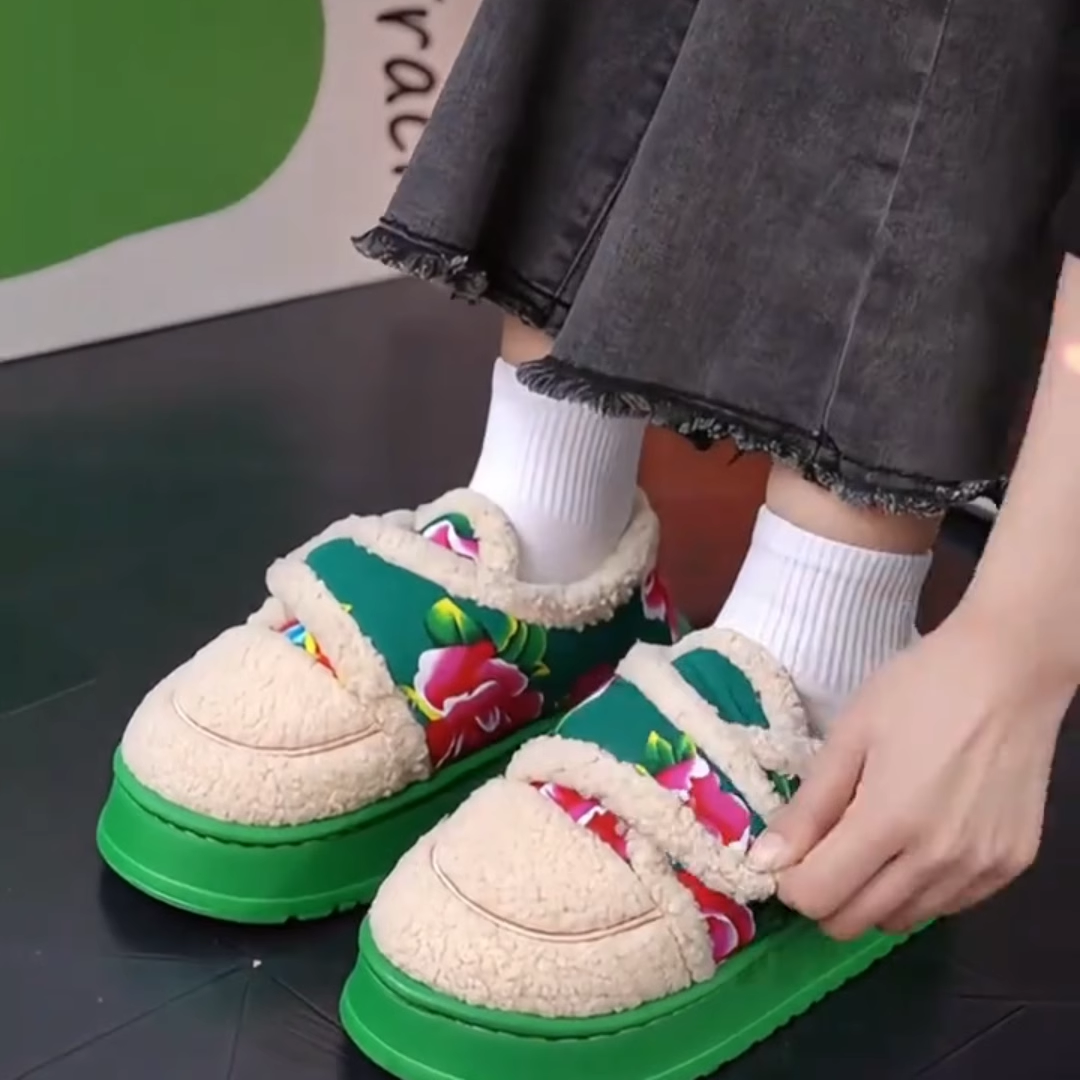 魔术贴包跟棉拖鞋女冬季防滑网红羊羔绒保暖加绒东北大花棉鞋外穿