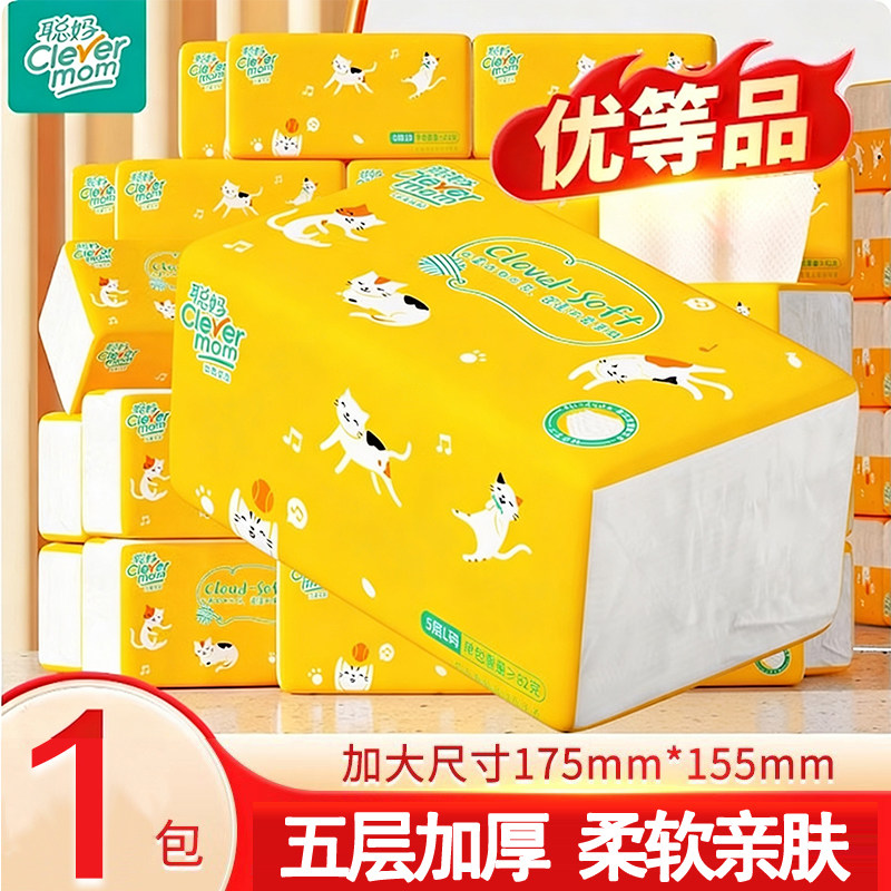 聪妈4层花语山茶抽纸家用餐巾纸面巾纸擦手厕所柔软亲肤纸巾软包