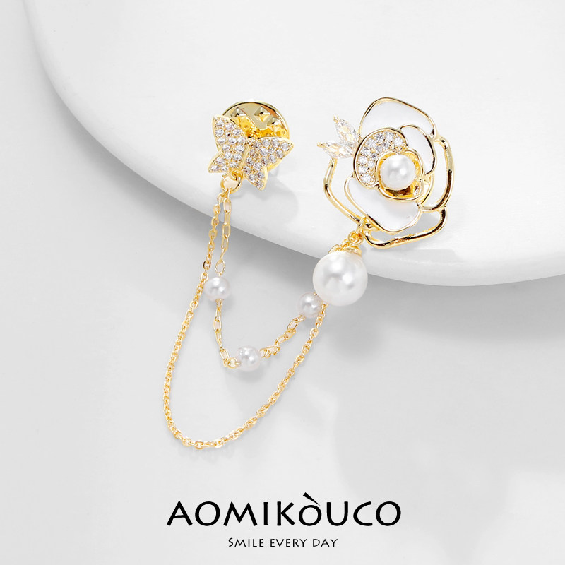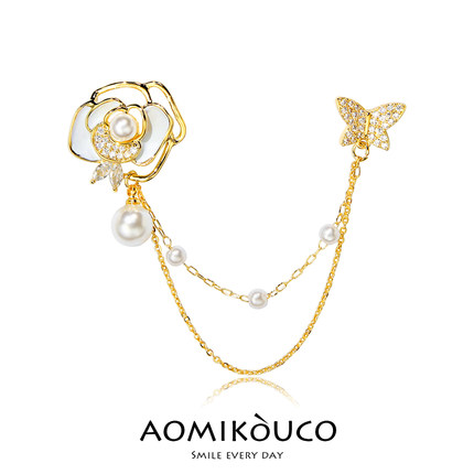 时尚小香风轻奢蝴蝶山茶花胸针高级感珍珠别针气质西装连衣裙配饰
