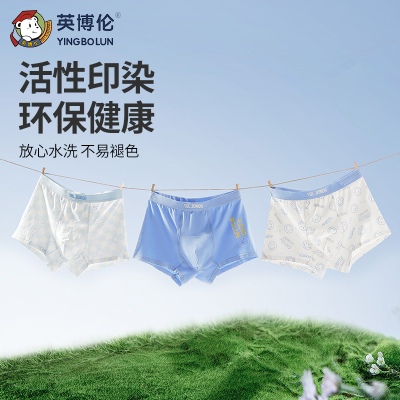 英博伦新款青少年内裤纯棉抗菌学生四角裤男大童平角全棉儿童短裤