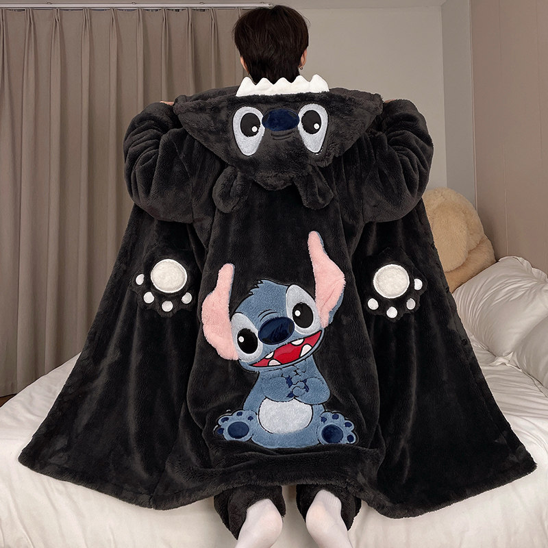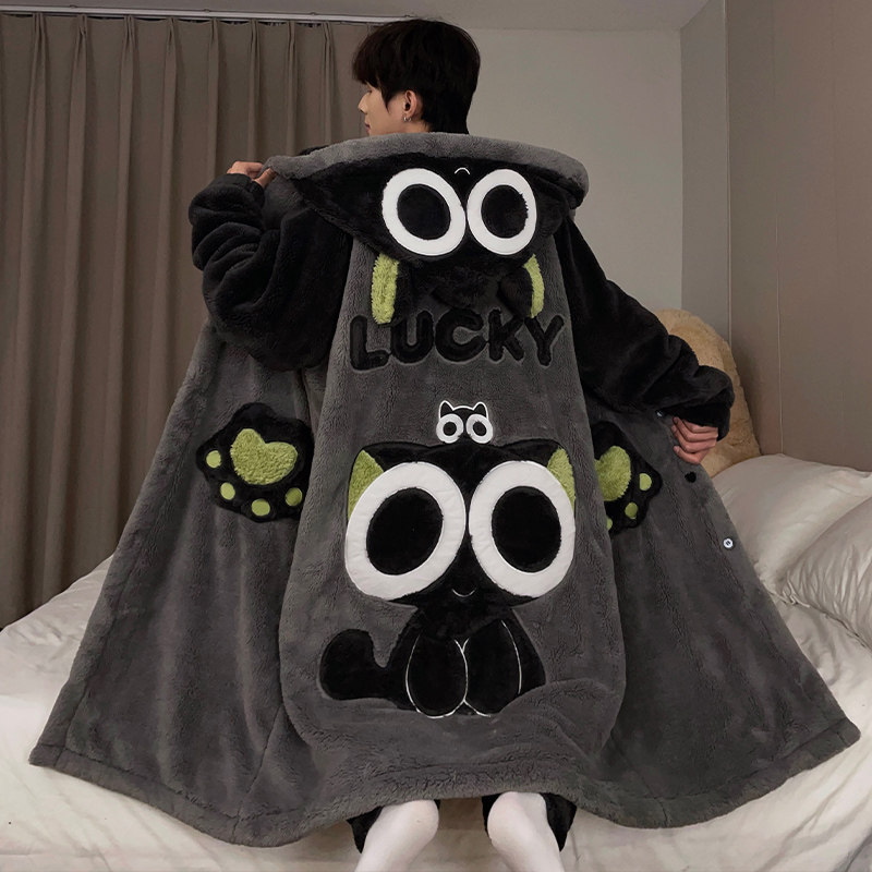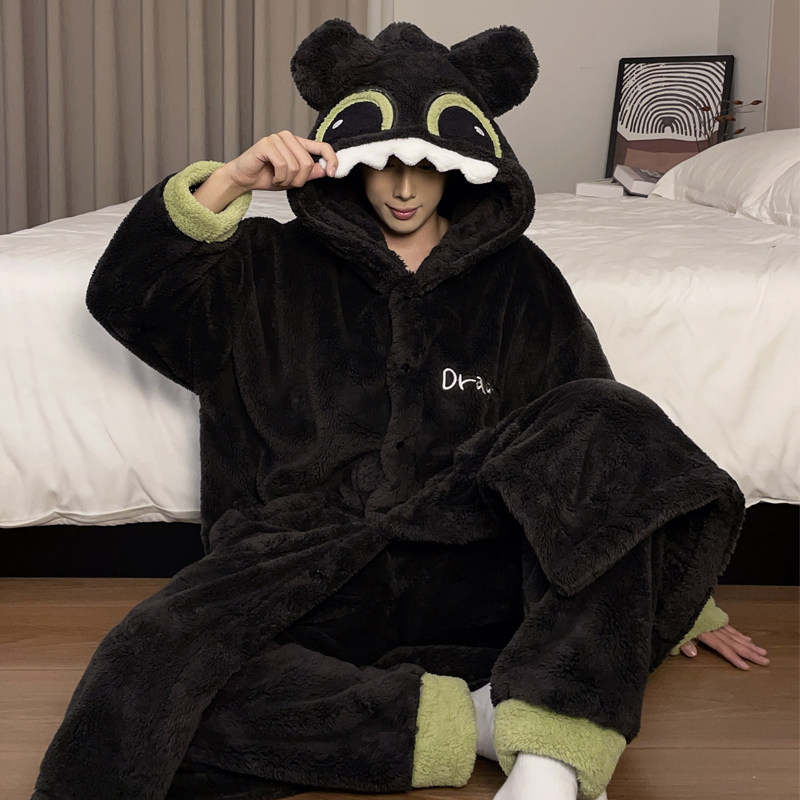 男士睡衣秋冬款加厚加绒珊瑚绒睡袍卡通套装冬季法兰绒浴袍家居服