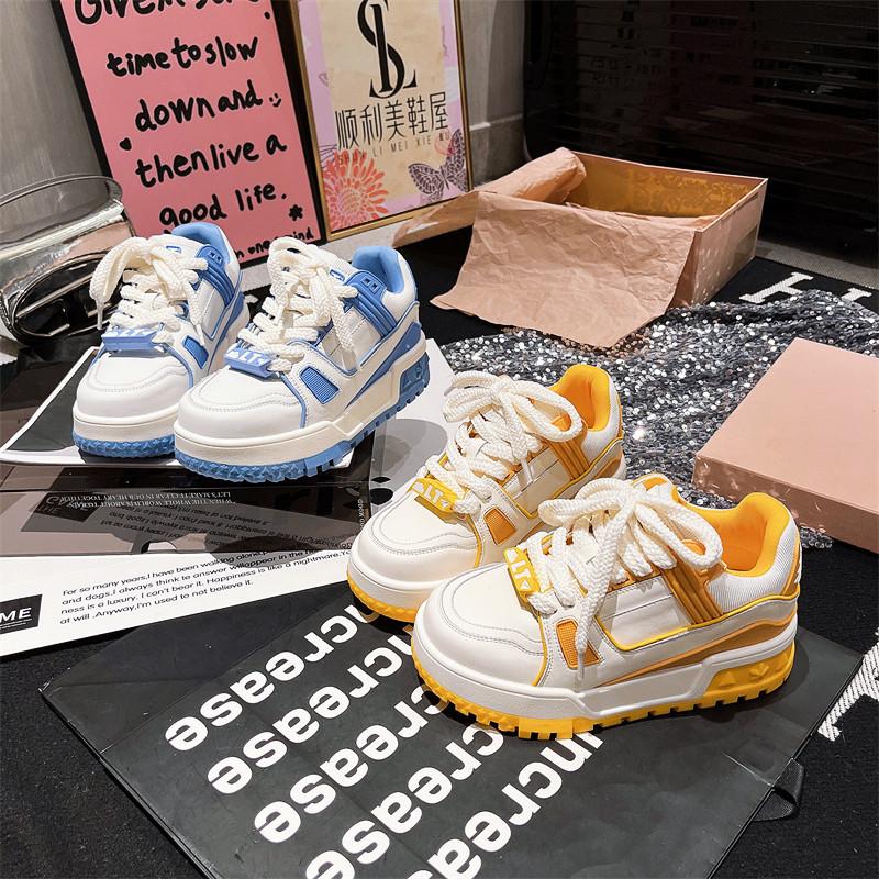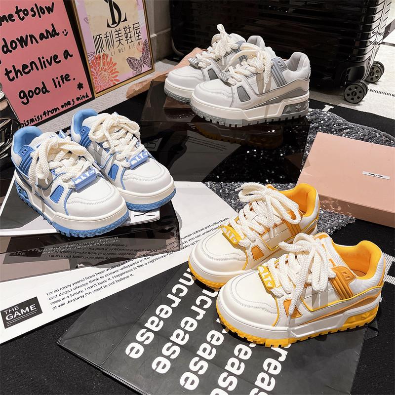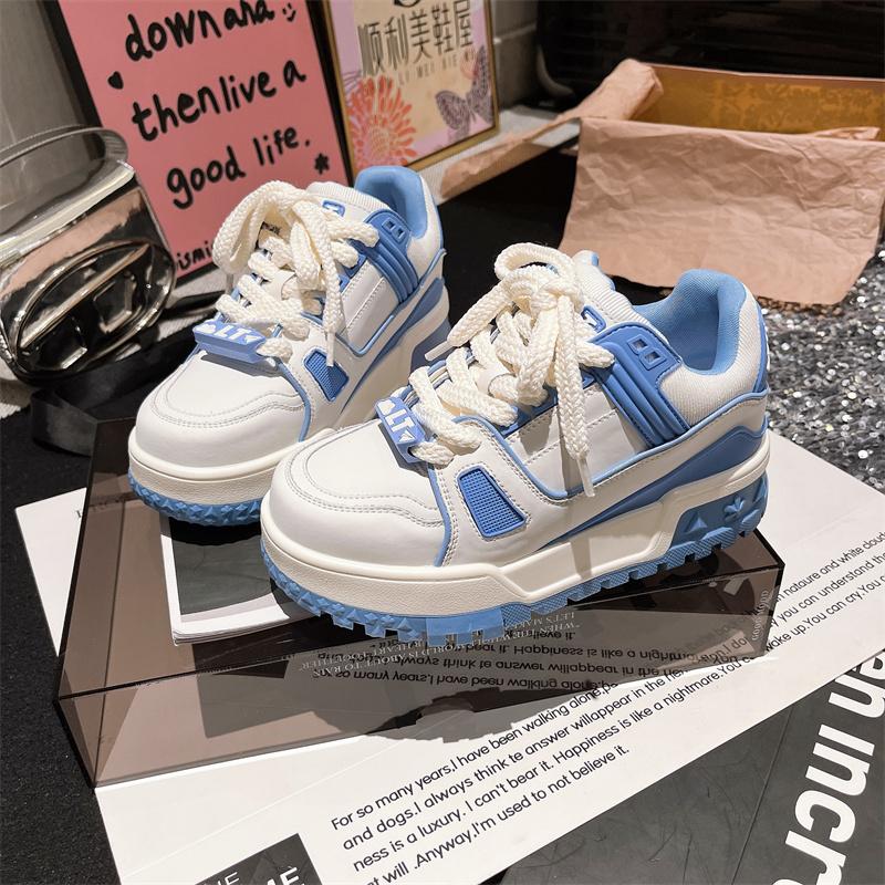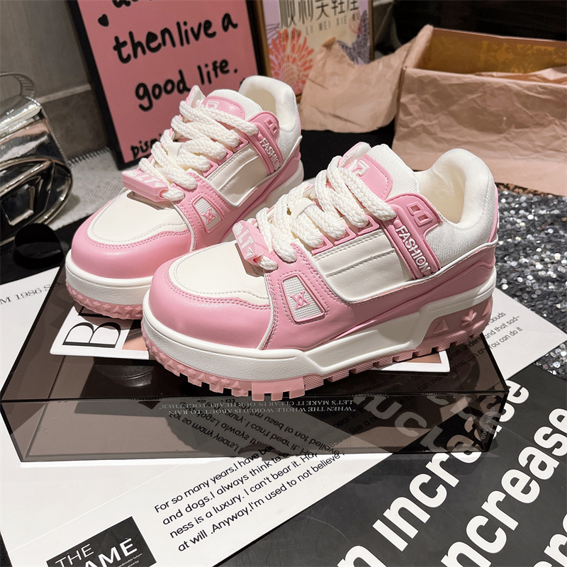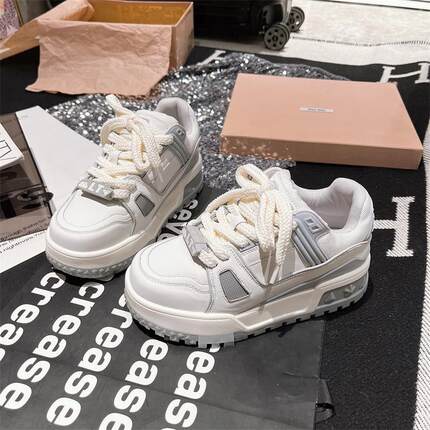 韩版ins超火真皮大头厚底松糕小胖丁休闲鞋面包鞋小白鞋松糕女鞋