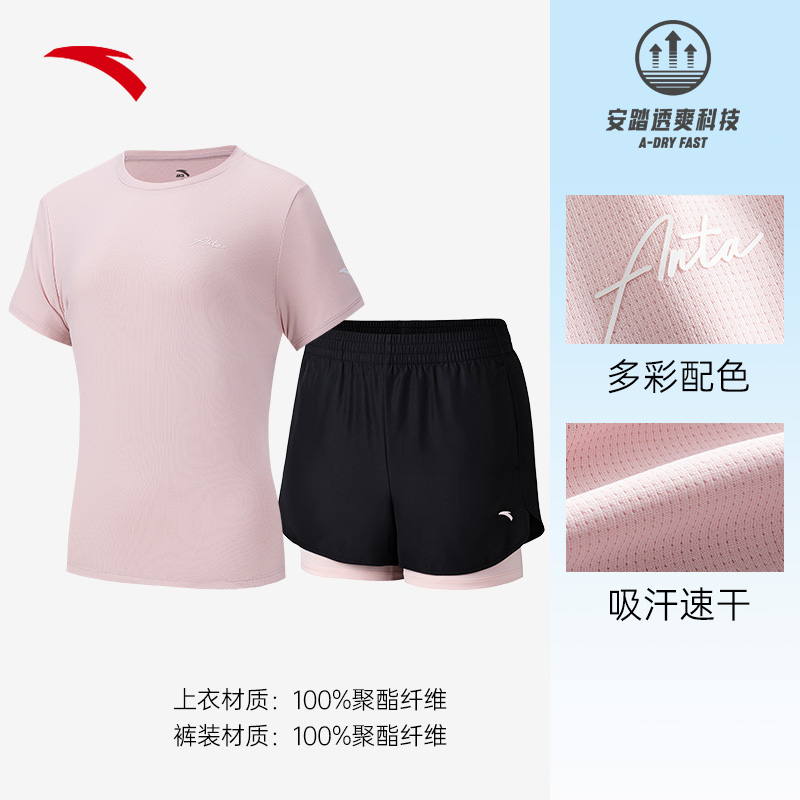安踏冰丝短裤跑步运动服套装女士夏季宽松速干薄款短袖休闲两件套
