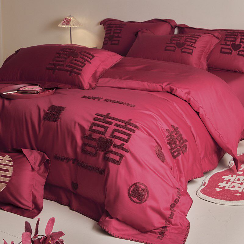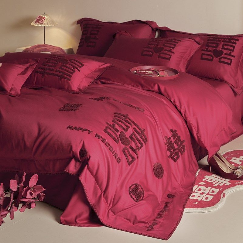 新中式结婚四件套全棉2024新款红色被套婚庆床单婚嫁床上用品