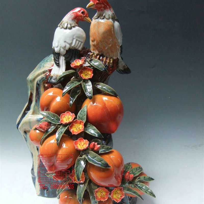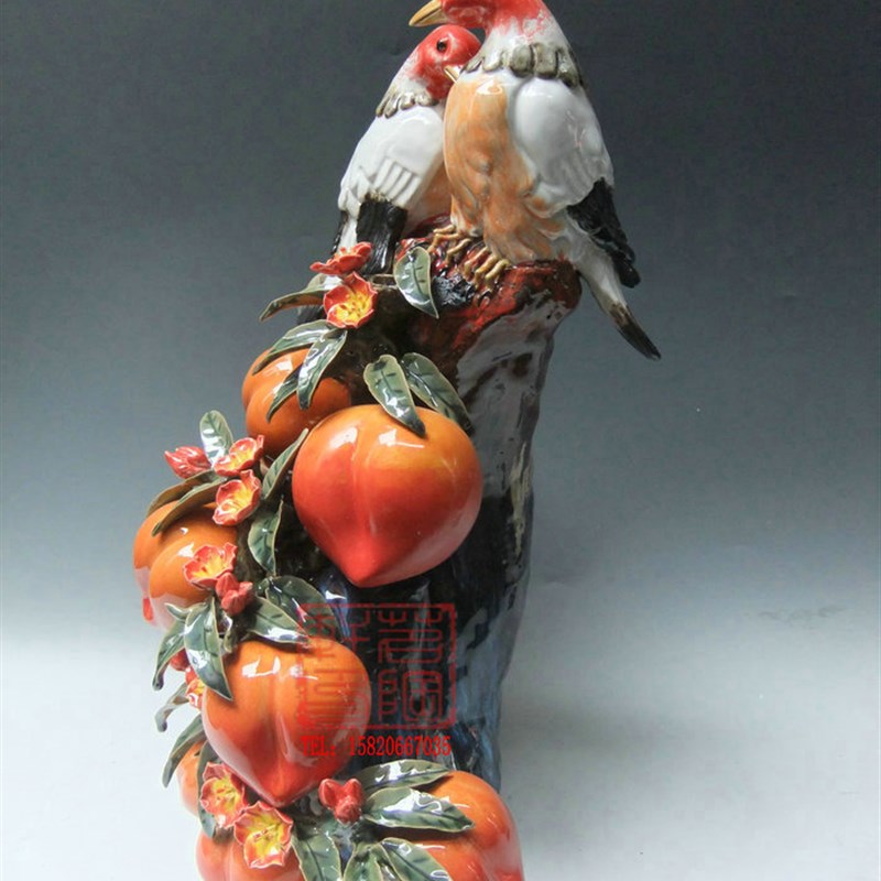 陶瓷工艺品 石湾公仔 福寿双至 寿桃摆件