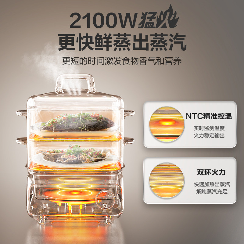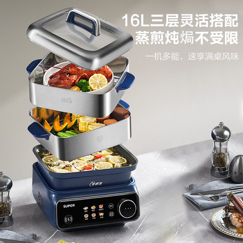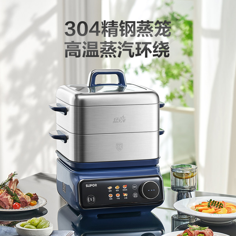苏泊尔猛火可拆洗电蒸锅多功能家用三层不锈钢蒸煮炖多功能蒸汽箱