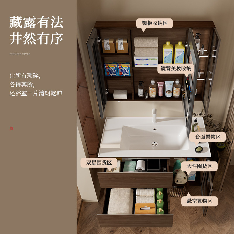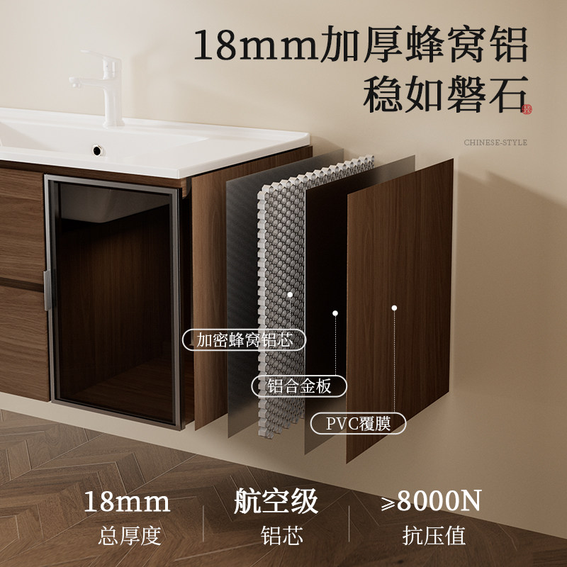 【新品】浪鲸砚木系列浴室柜洗手盆柜组合蜂窝铝陶瓷一体盆037