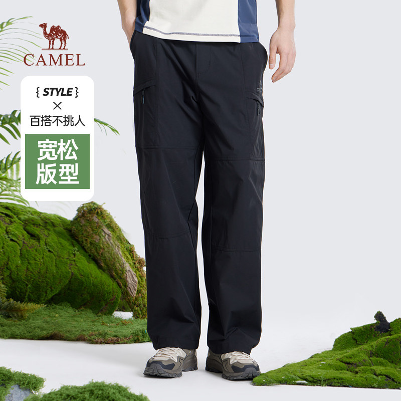 骆驼男装工装裤男2025新款春夏季宽松直筒吸湿速干户外运动休闲裤