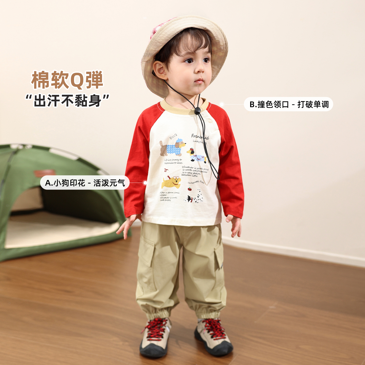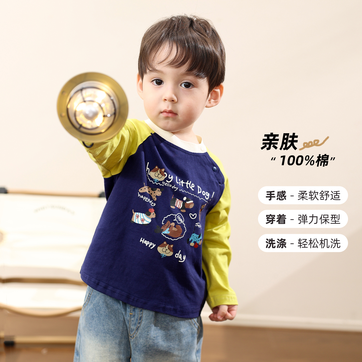 小O爸男婴童 宝宝长袖t恤春秋2025新款纯棉A类婴儿撞色卡通上衣