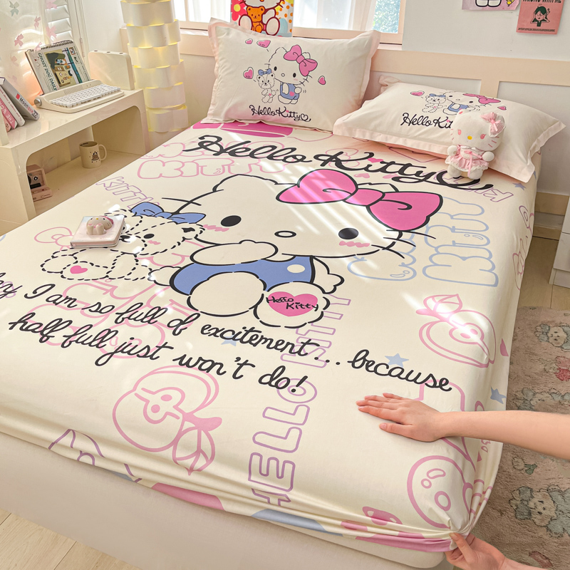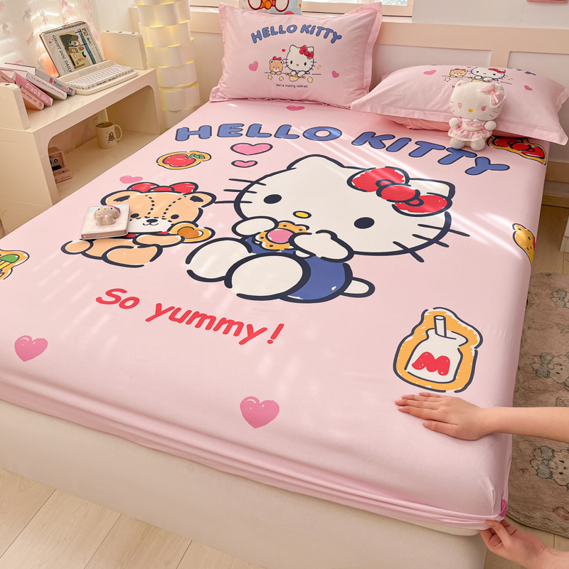 helloKitty全棉床笠单件女孩卡通纯棉床单儿童床罩防滑床垫保护套