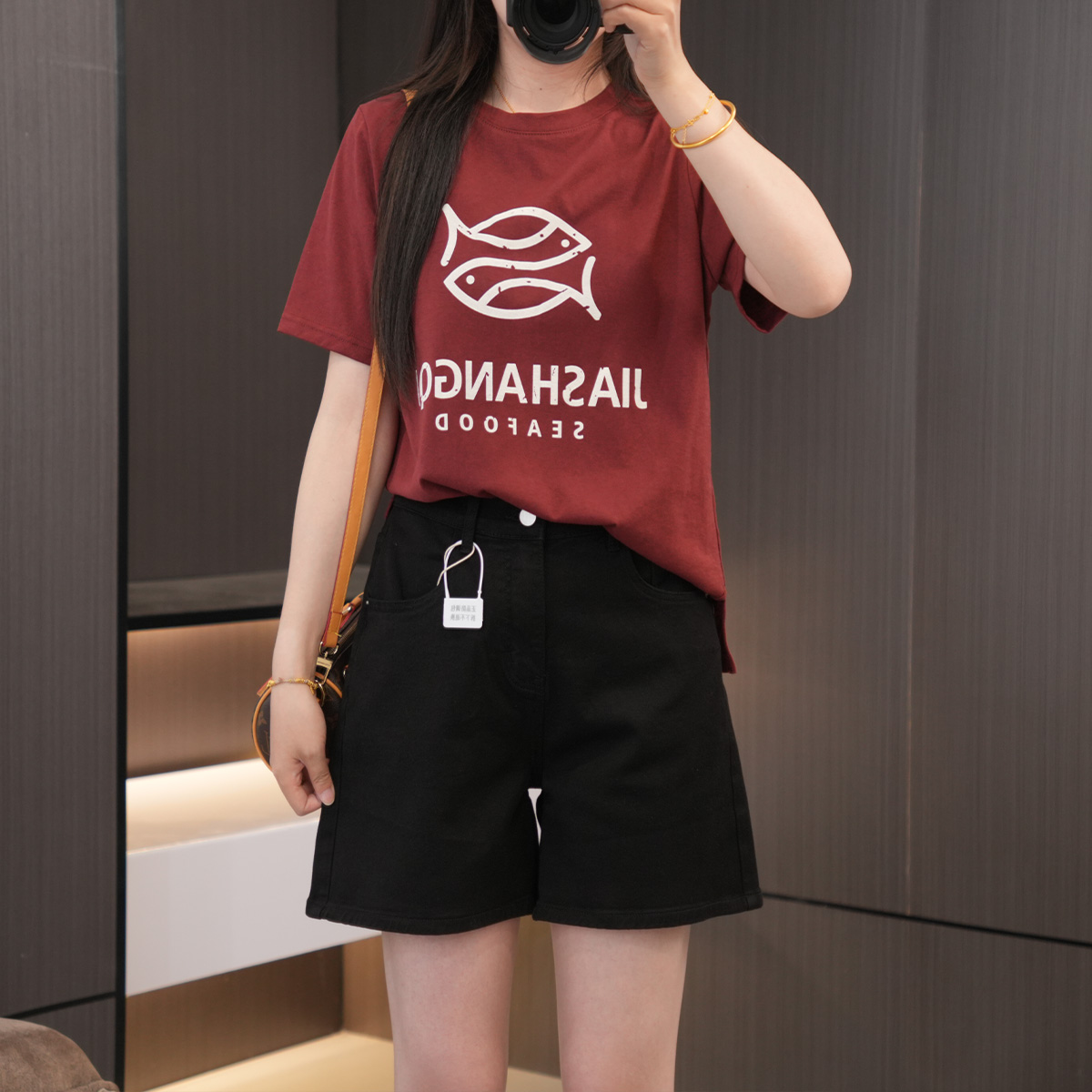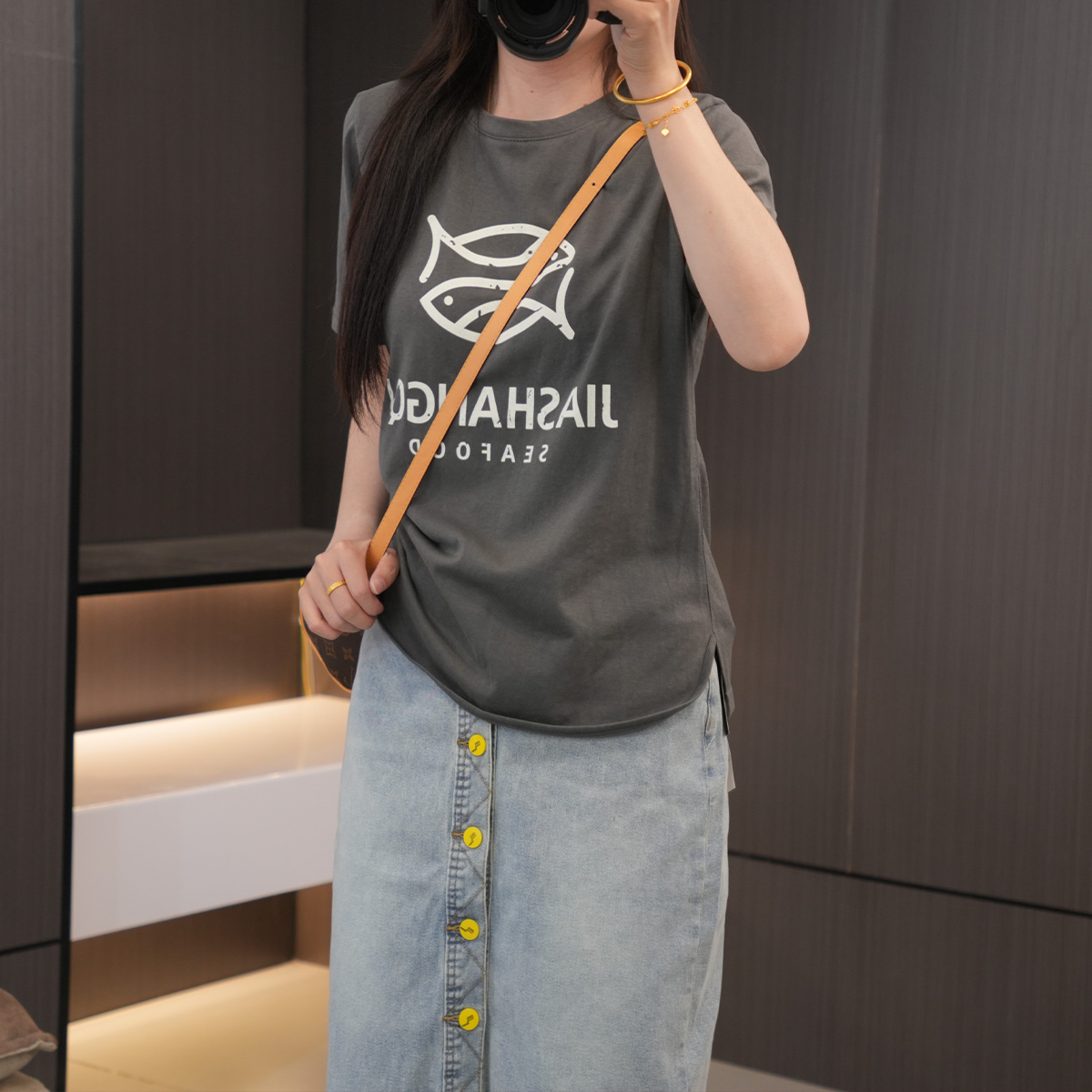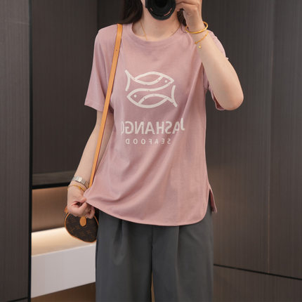夏季时尚小鱼儿字母印花大码短袖120-200斤胖妹妹显白显瘦百搭T恤