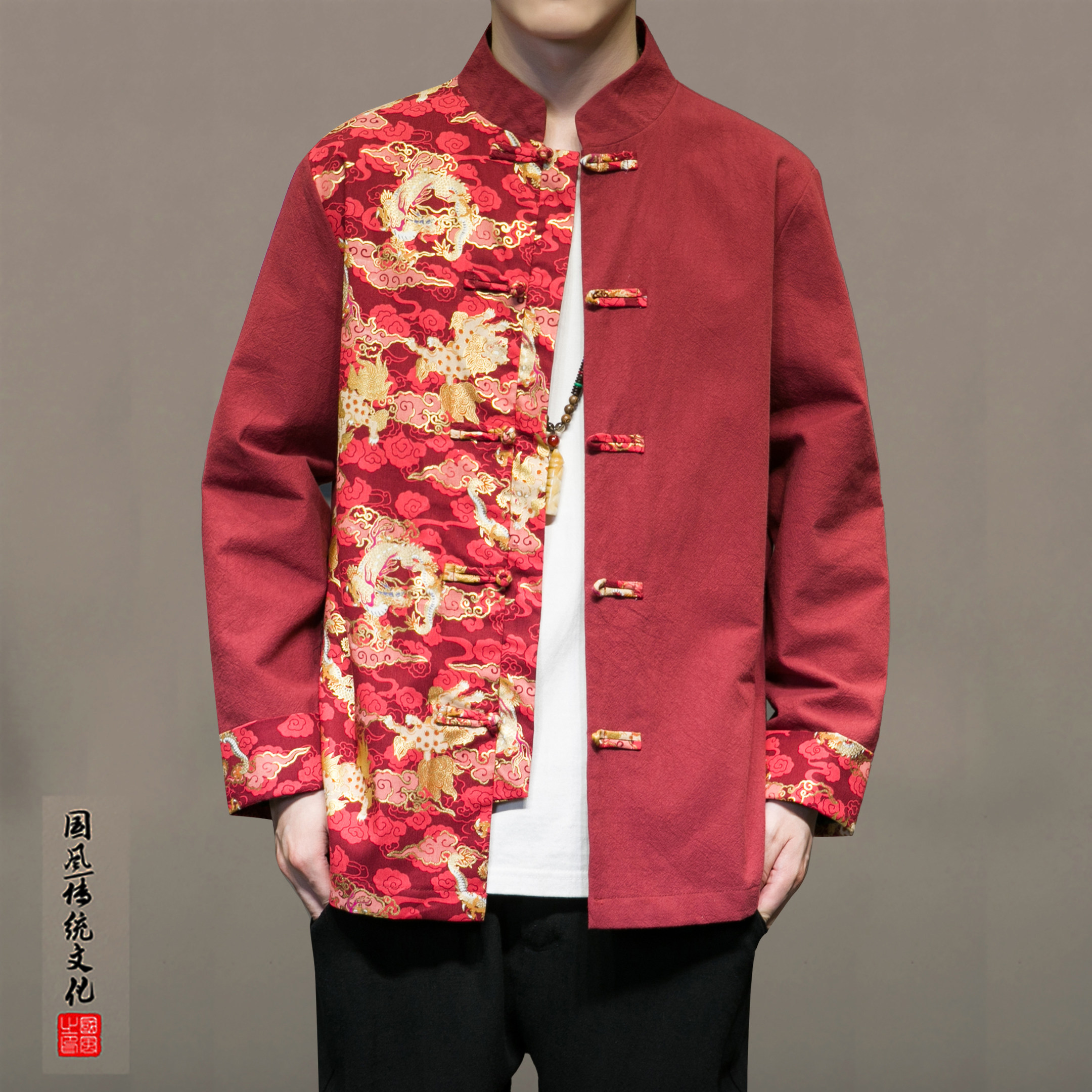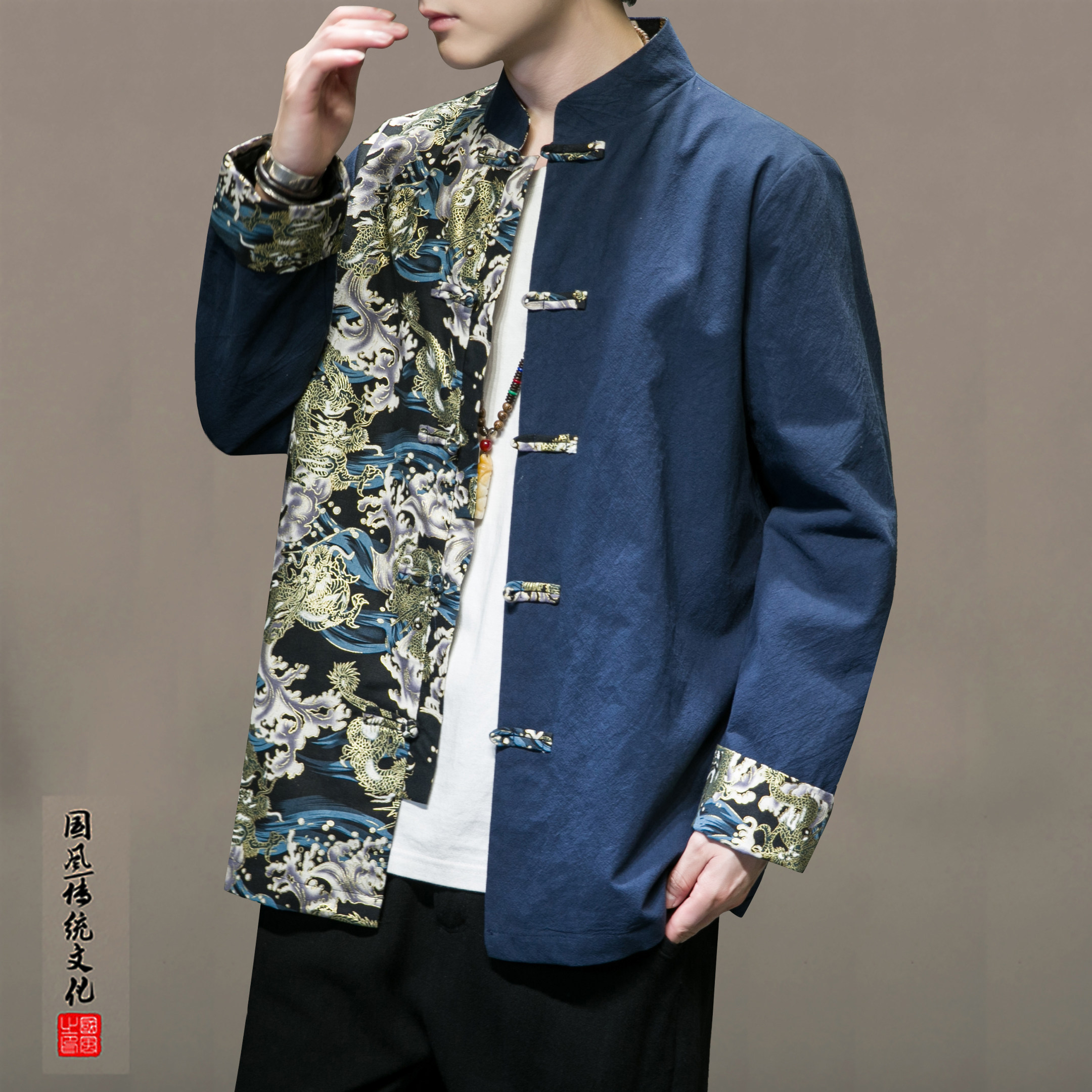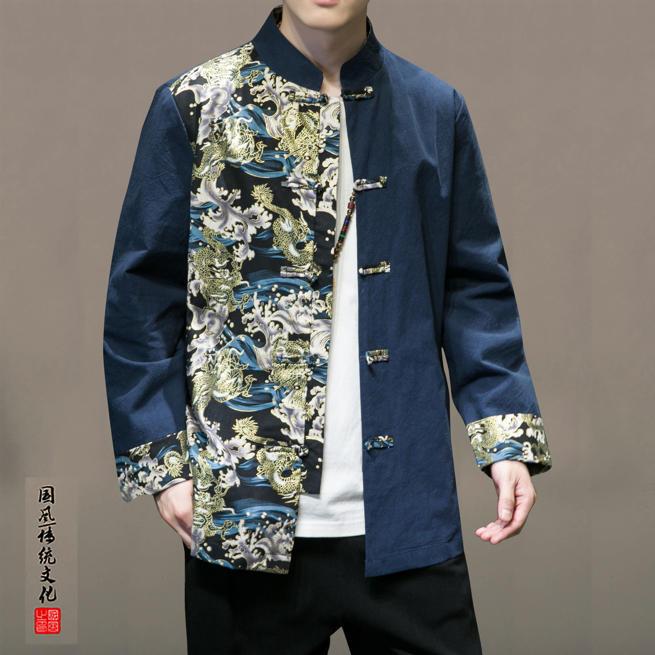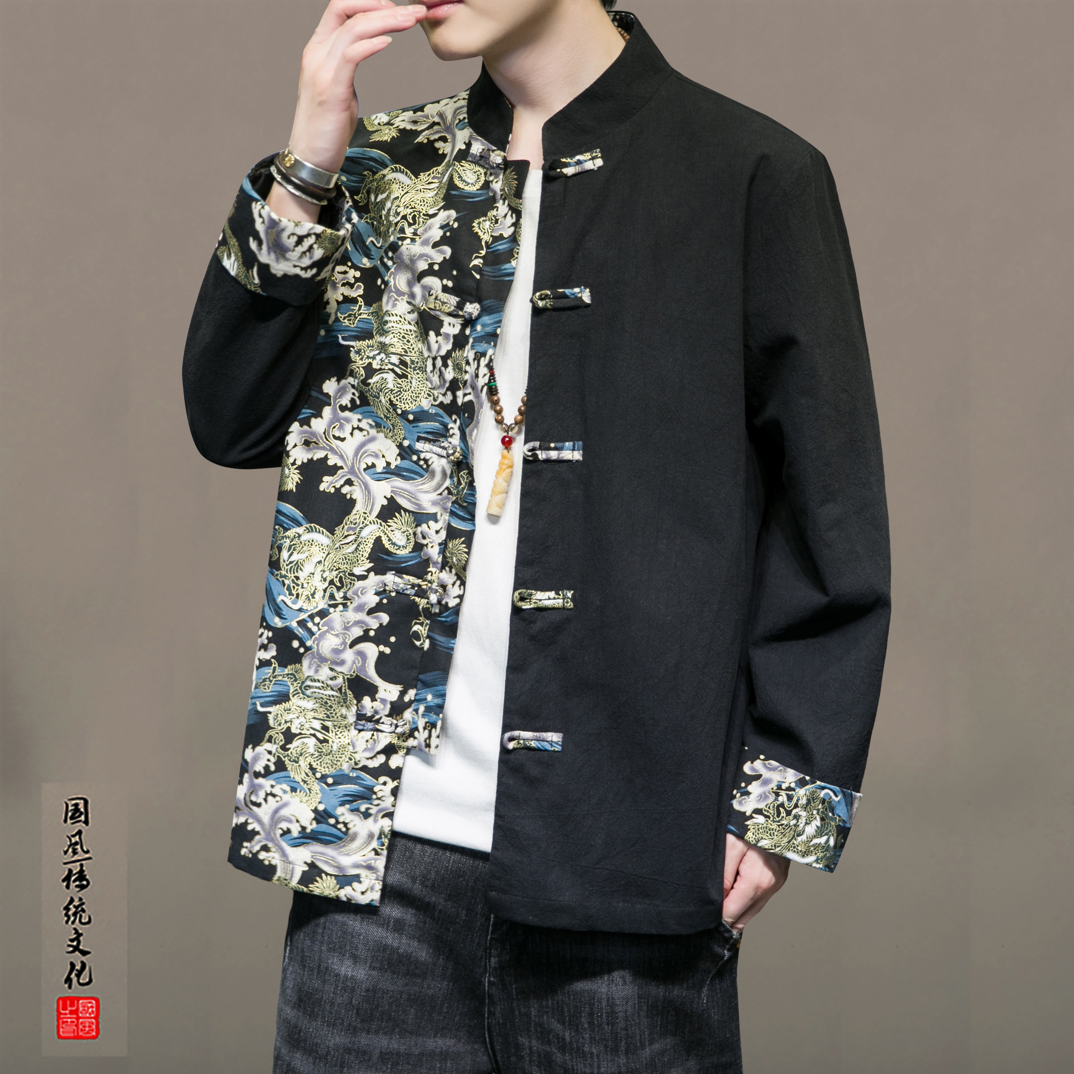 新中式长袖衬衫男春季中国风唐装男汉服居士服棉麻禅修茶服外套潮