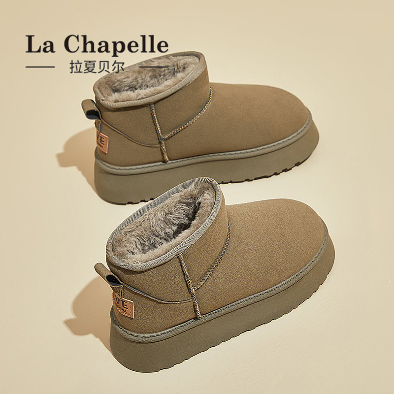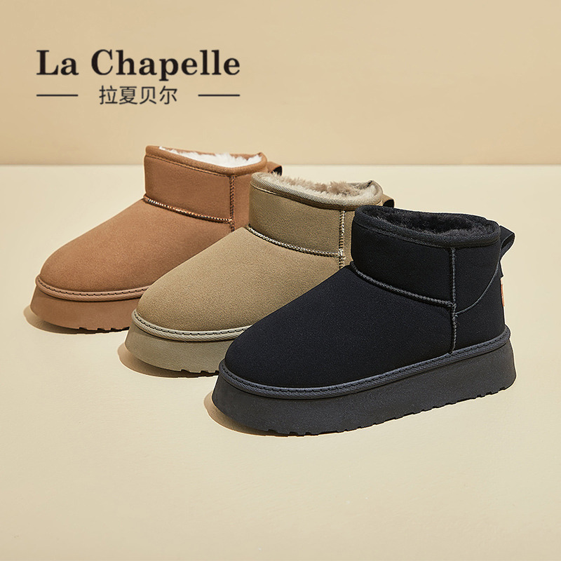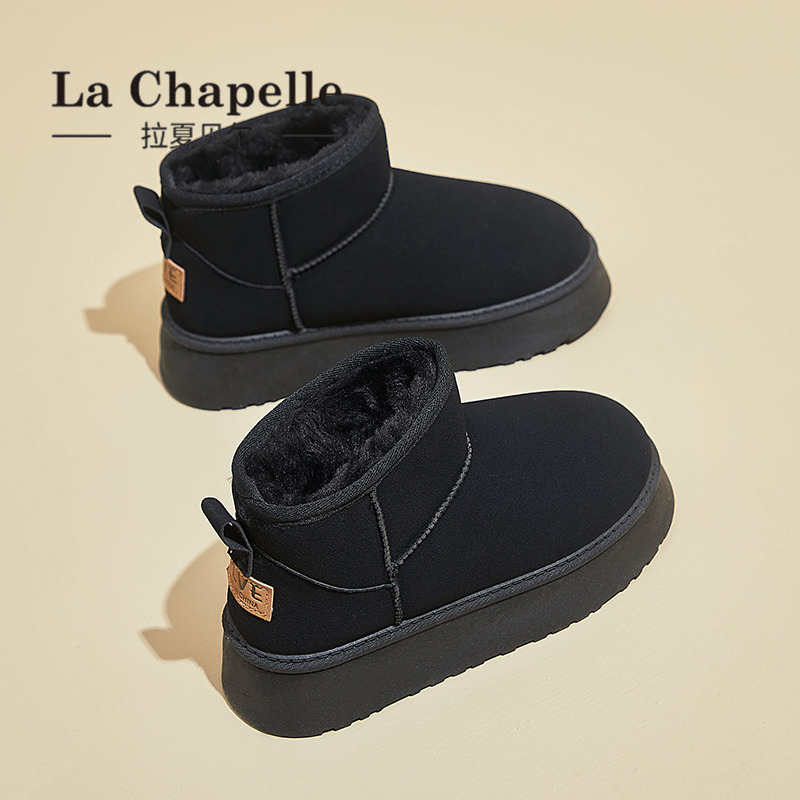 拉夏贝尔厚底雪地靴加绒保暖棉鞋