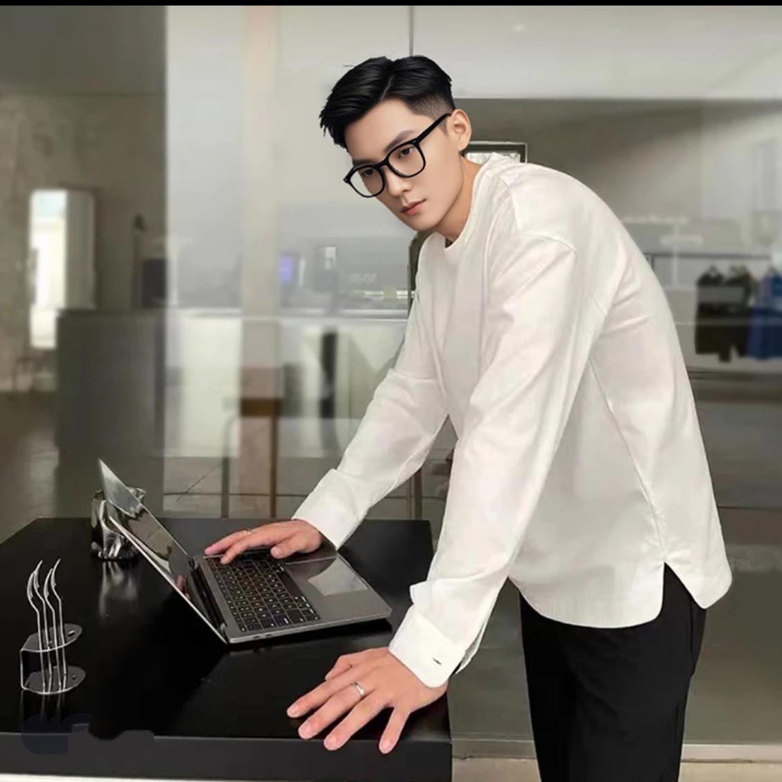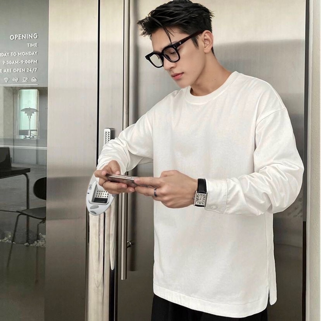 秋冬新款100%纯棉长袖t恤男纯色下摆开叉打底衫男潮流高档纽扣款