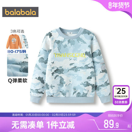 巴拉巴拉男童卫衣中大童宝宝圆领打底衫春秋季新款童装儿童上衣小